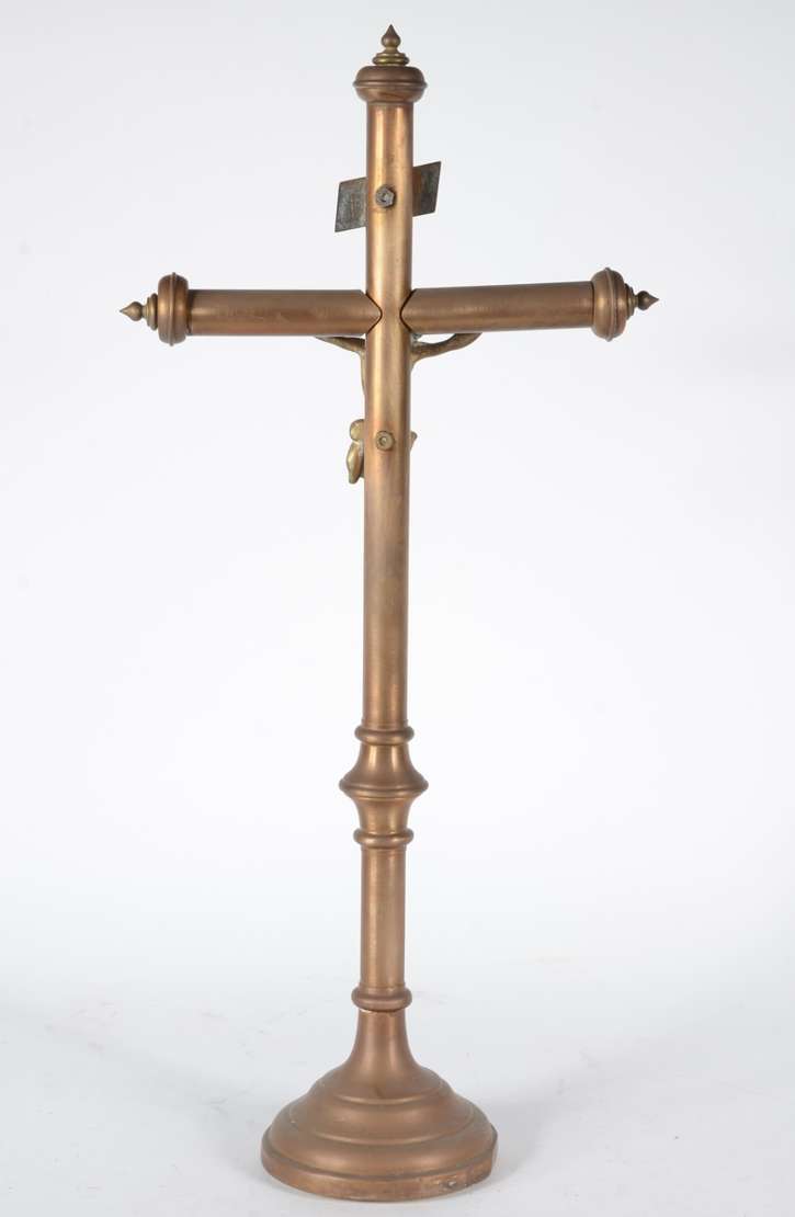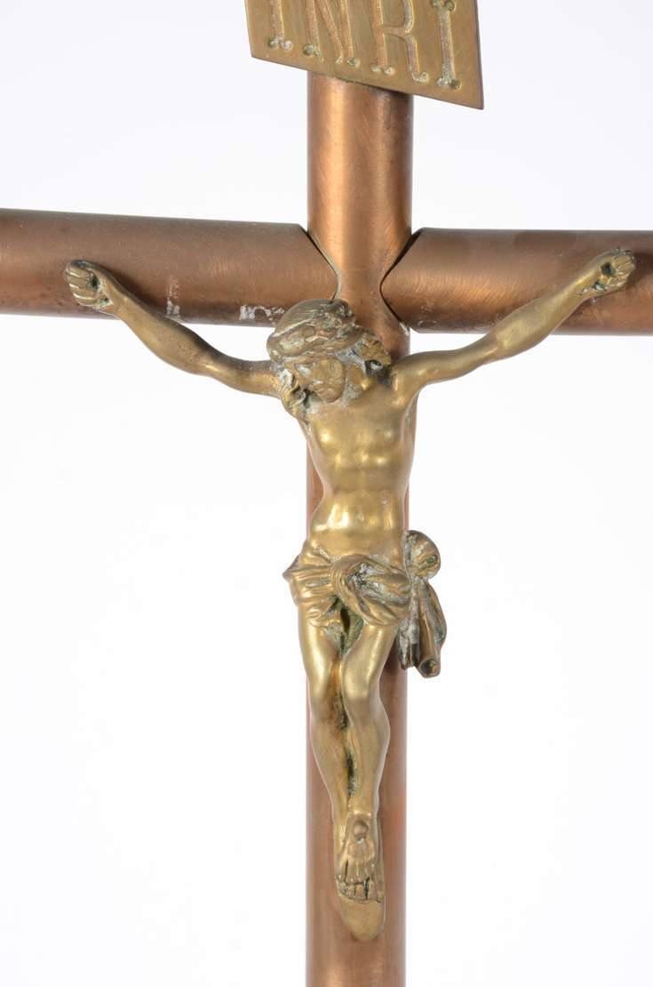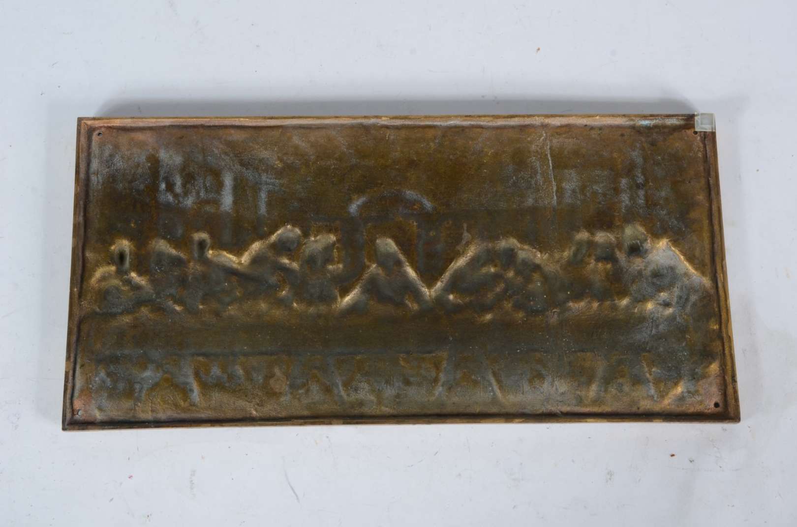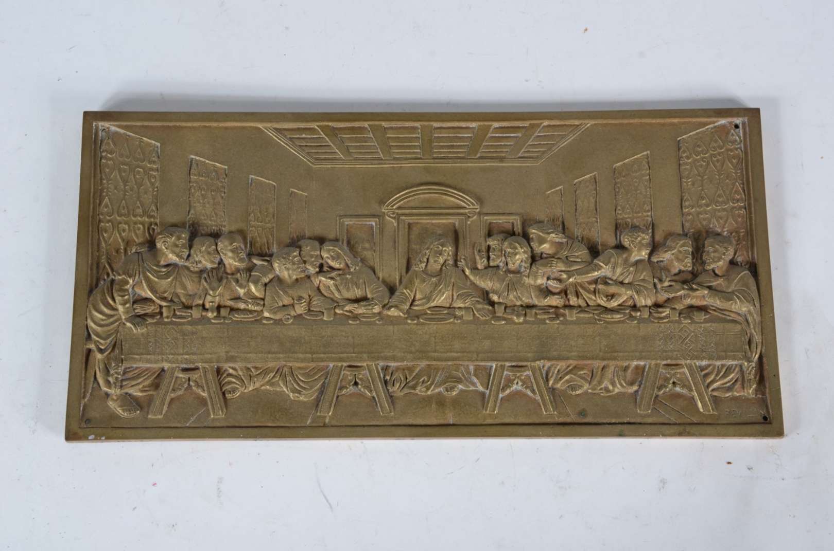 Duas peças sacras, sendo: santa ceia e crucifixo com figura de Cristo de bronze.