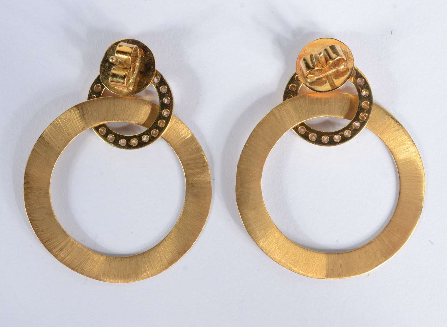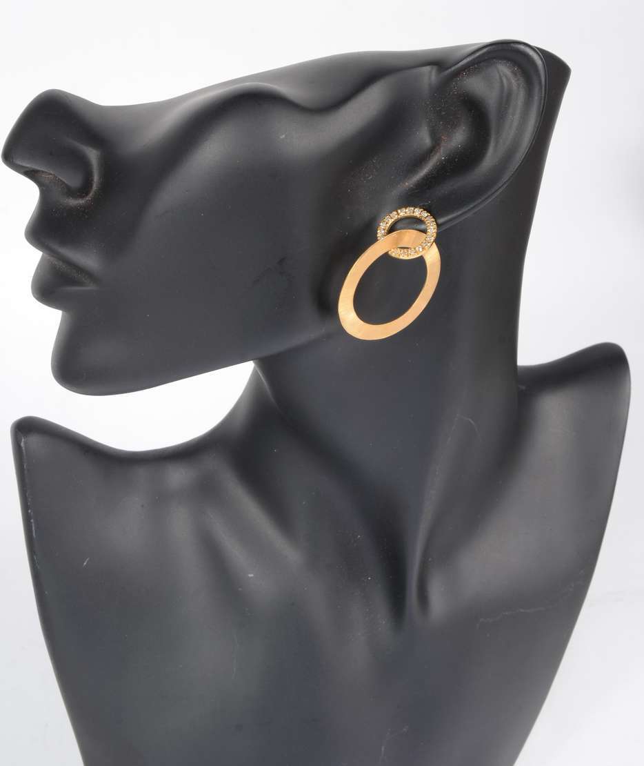 Par de brincos de pressão de ouro 18 k., com brilhantes. (Por motivos de segurança a peça não se encontra na loja).