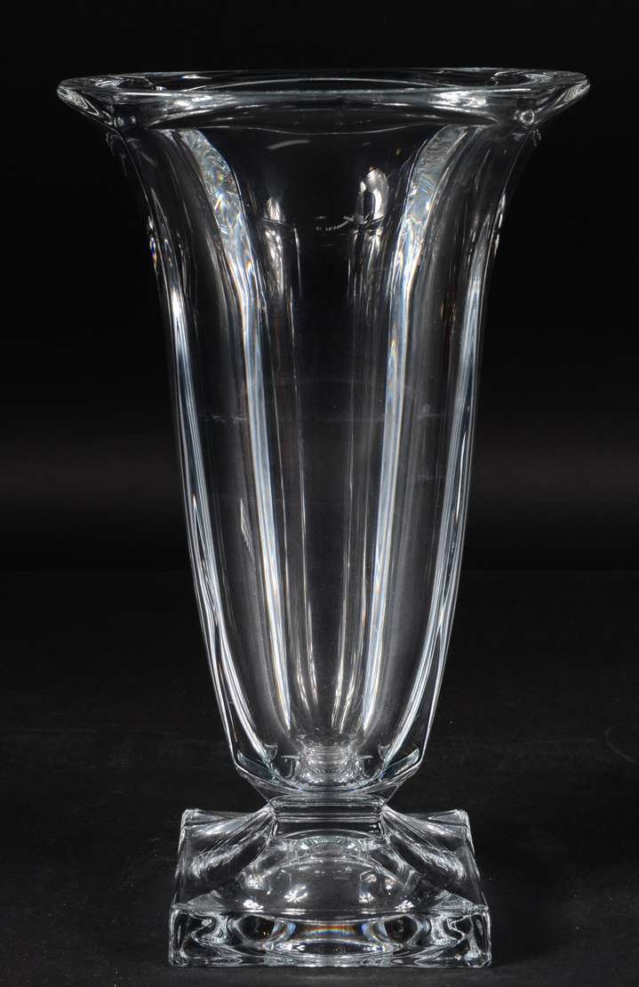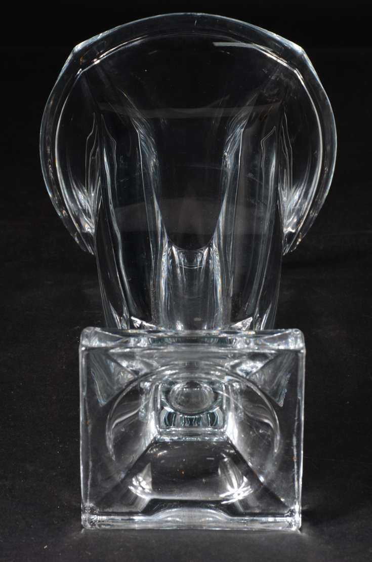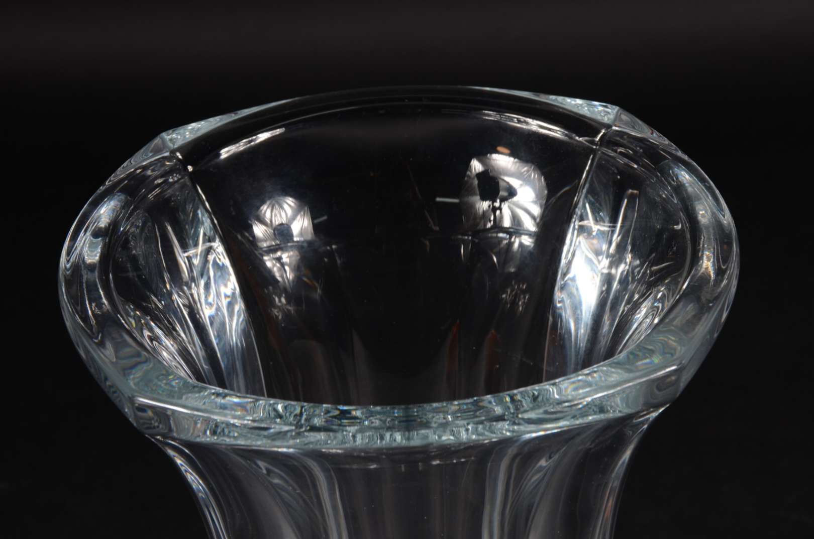 Três peças diversas de cristal, sendo: vaso lapidado; , Solifleur com base recortada em gomos, anos 60; e, bomboniere...