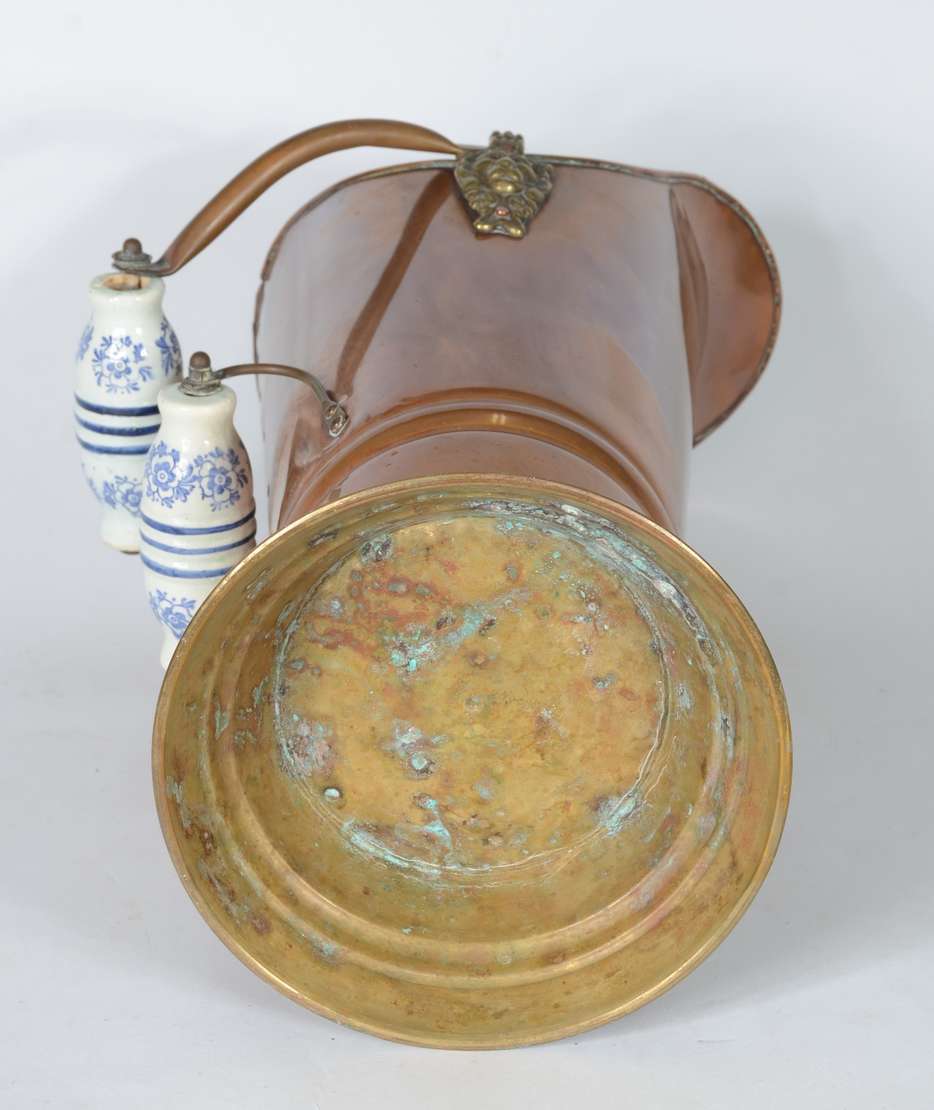 Grande ânfora com alças de cerâmica portuguesa pintada a mão com motivos florais em policromia sobre fundo azul cobal...