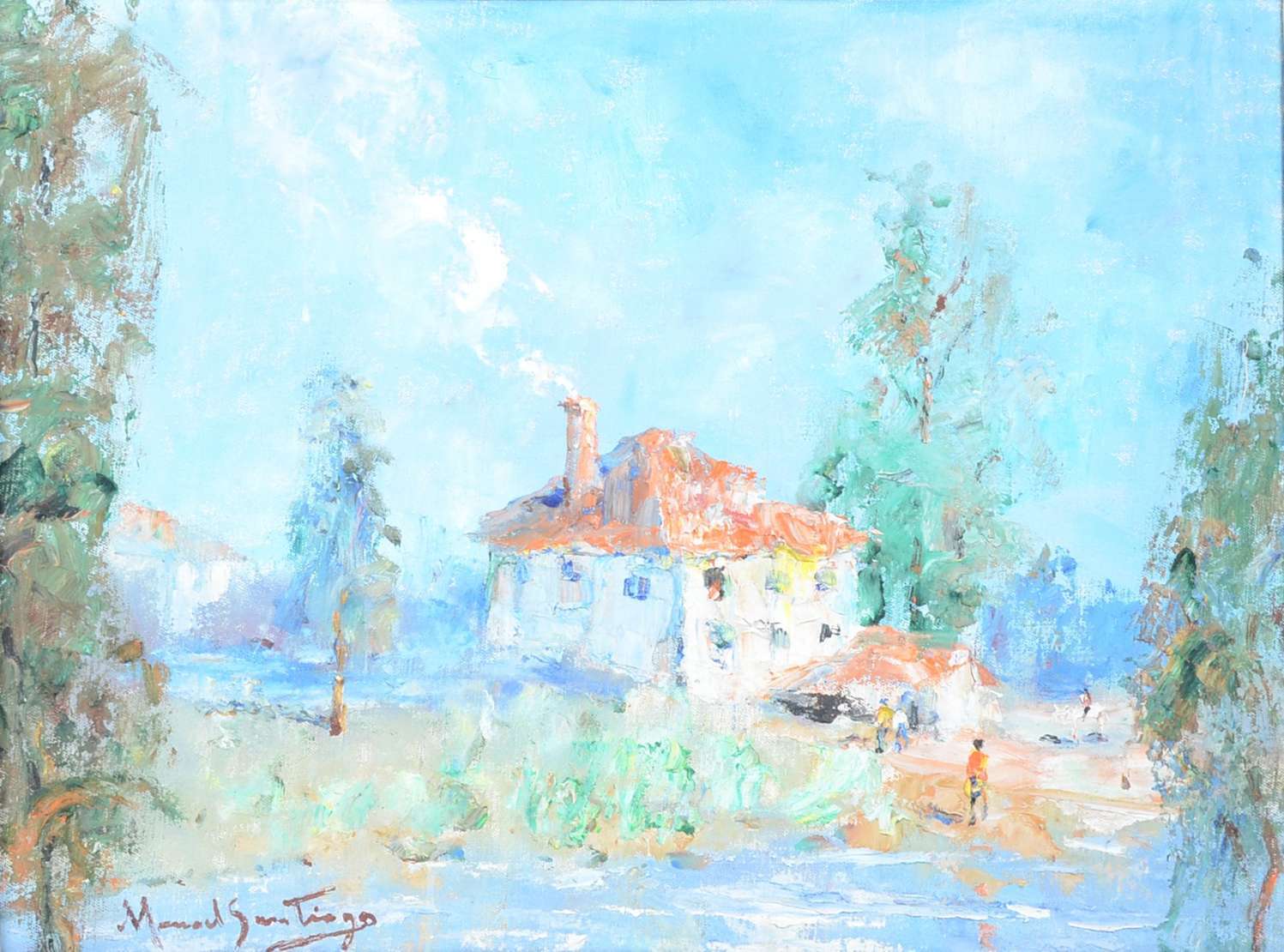 Estampa decorativa representando onça. Pequenos pontos de fungo.