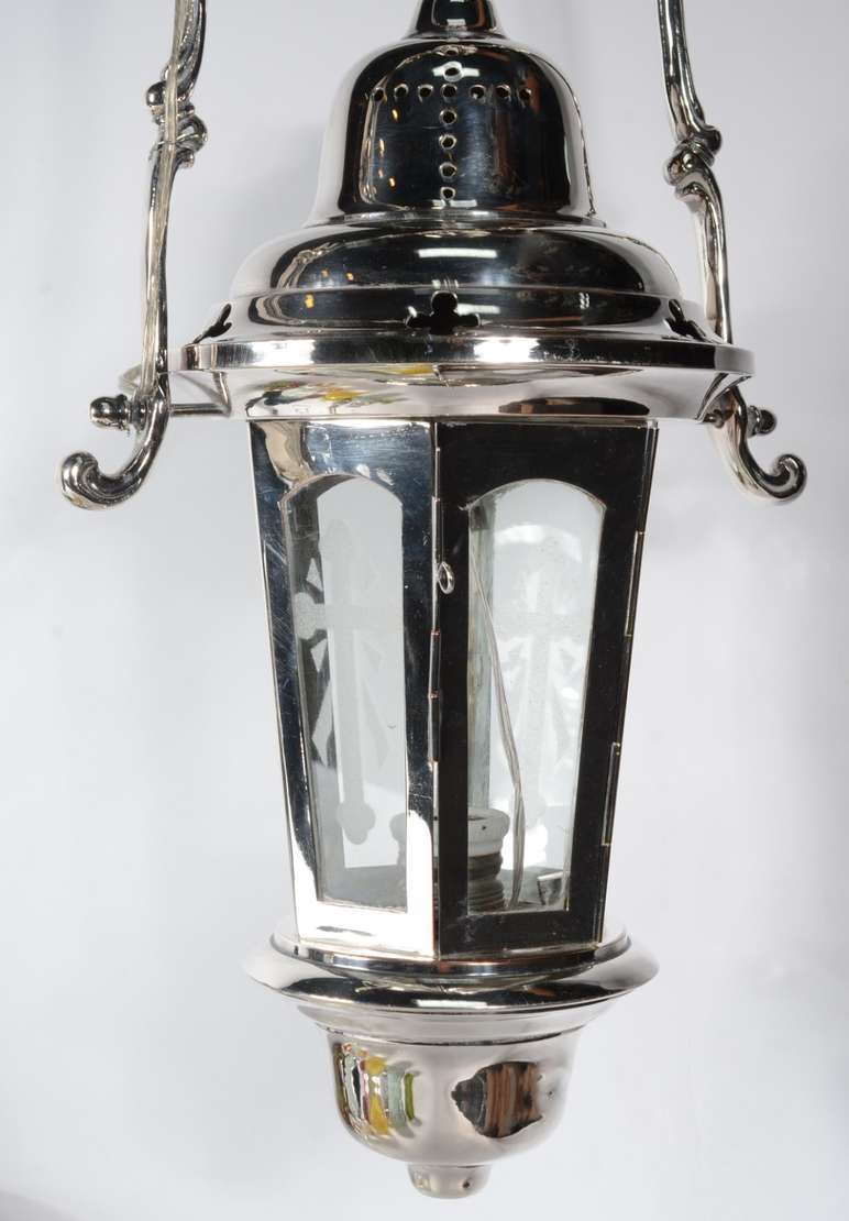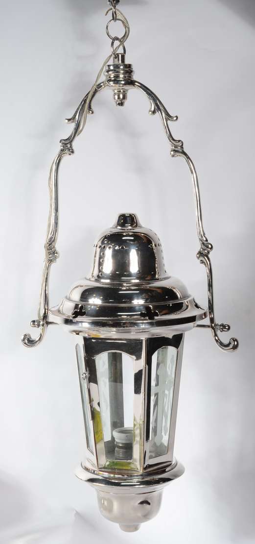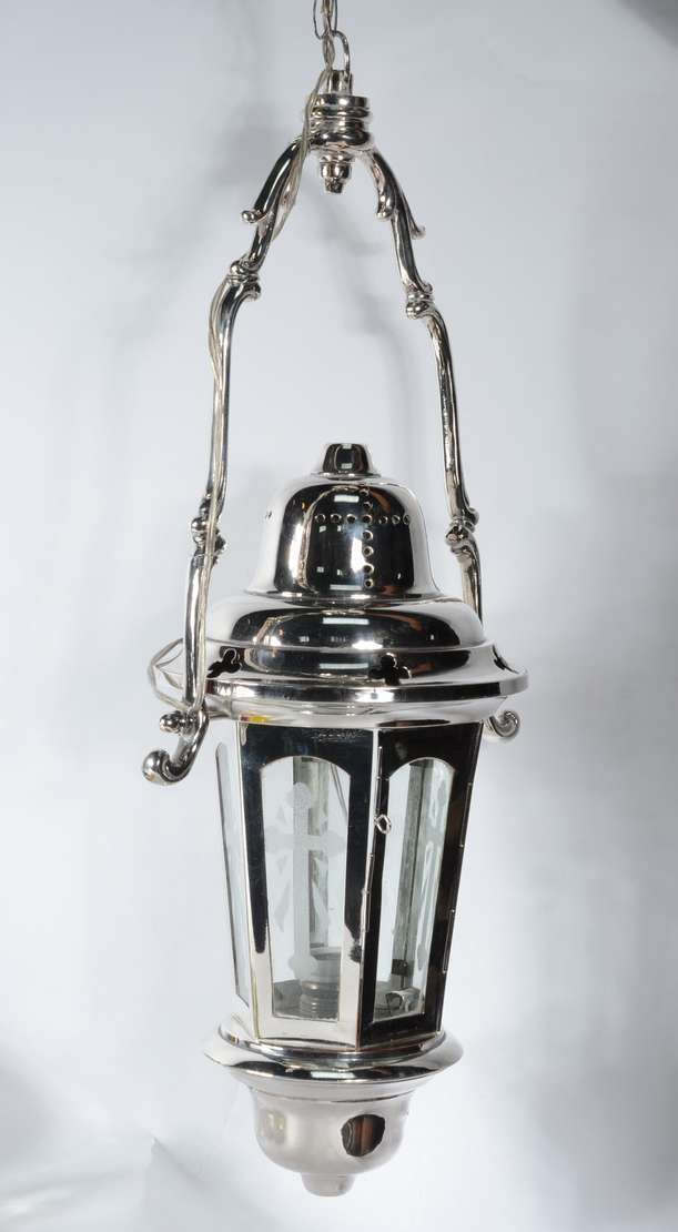 Lanterna de vidro fosco com guarnição de metal dourado.
