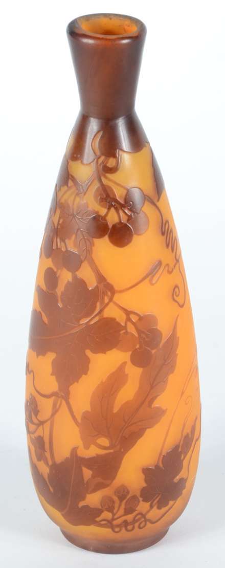 Par de vasos de opalina francesa na cor verde decoradas com delicadas guirlandas florais e realces dourados. Uma dela...