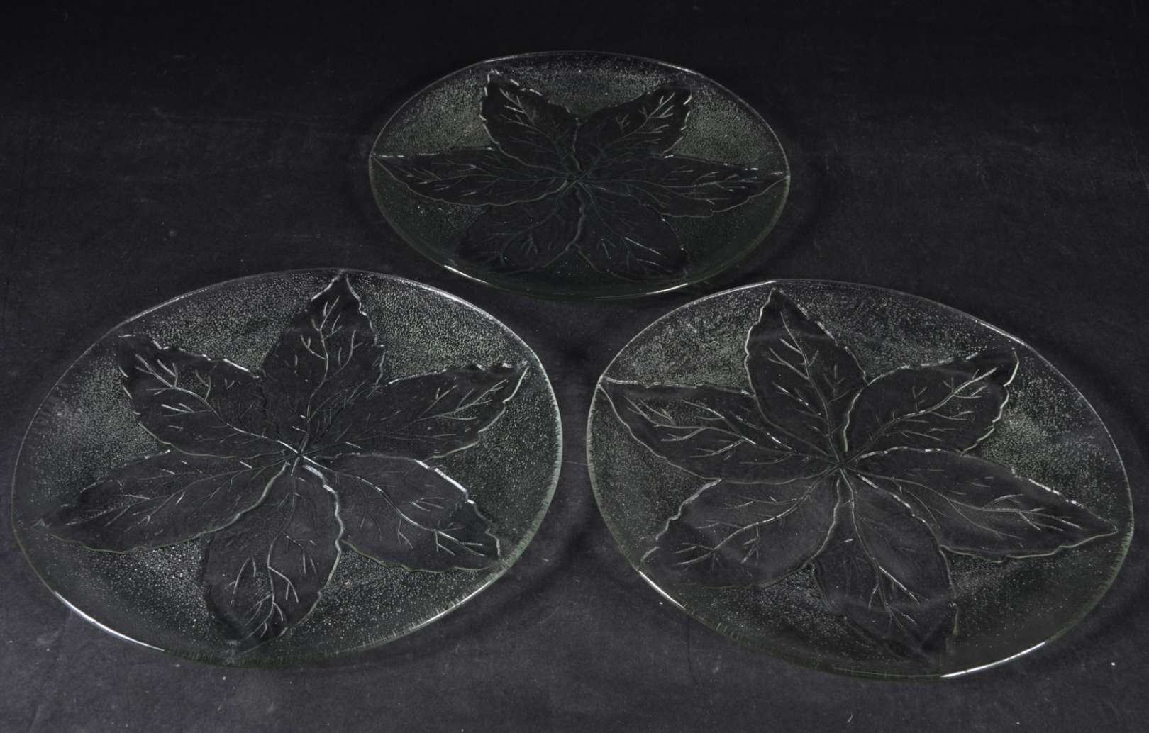 Três peças diversas de vidro trabalhado, sendo: 2 porta confeitos e travessa.