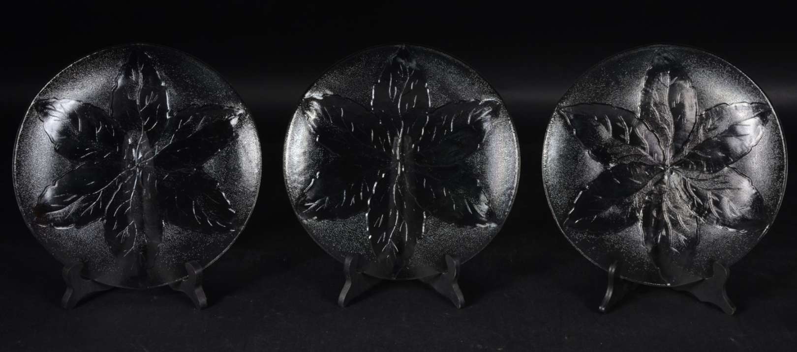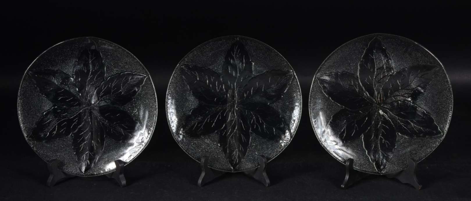 Conjunto de cristal tcheco lapidado, composto de: dois pratos grandes para sobremesa (um deles doublé âmbar) e 6 prat...