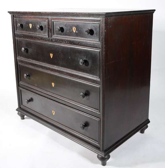 Cômoda de madeira nobre, duas gavetinhas e três gavetões, entrada das chaves de osso.