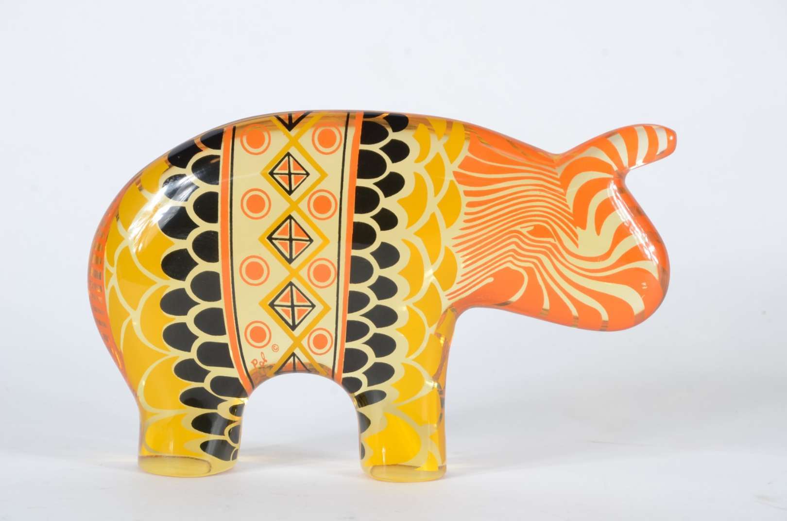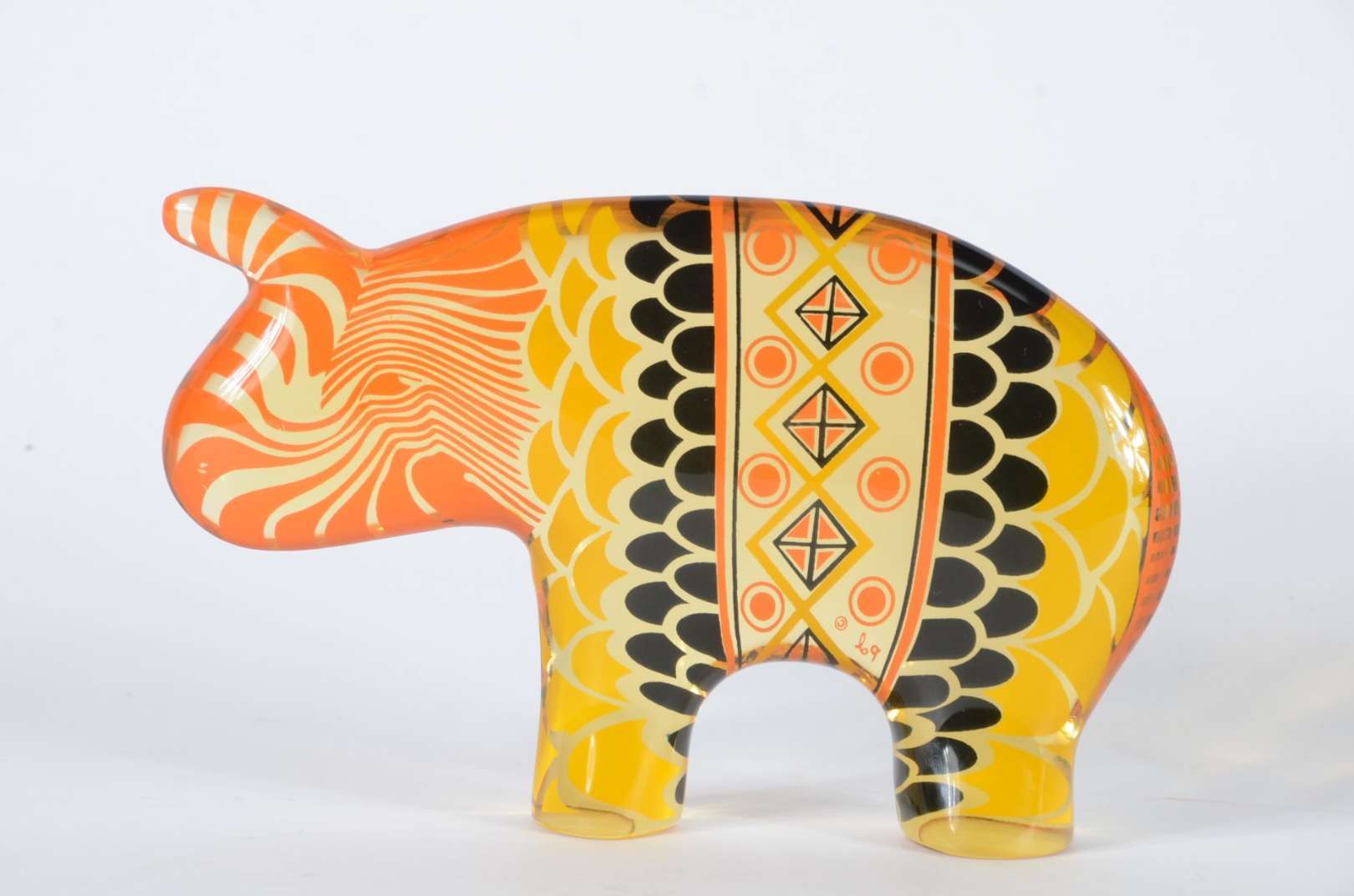 Netsuke de marfim representando figura masculina segurando chapéu e chinelo.