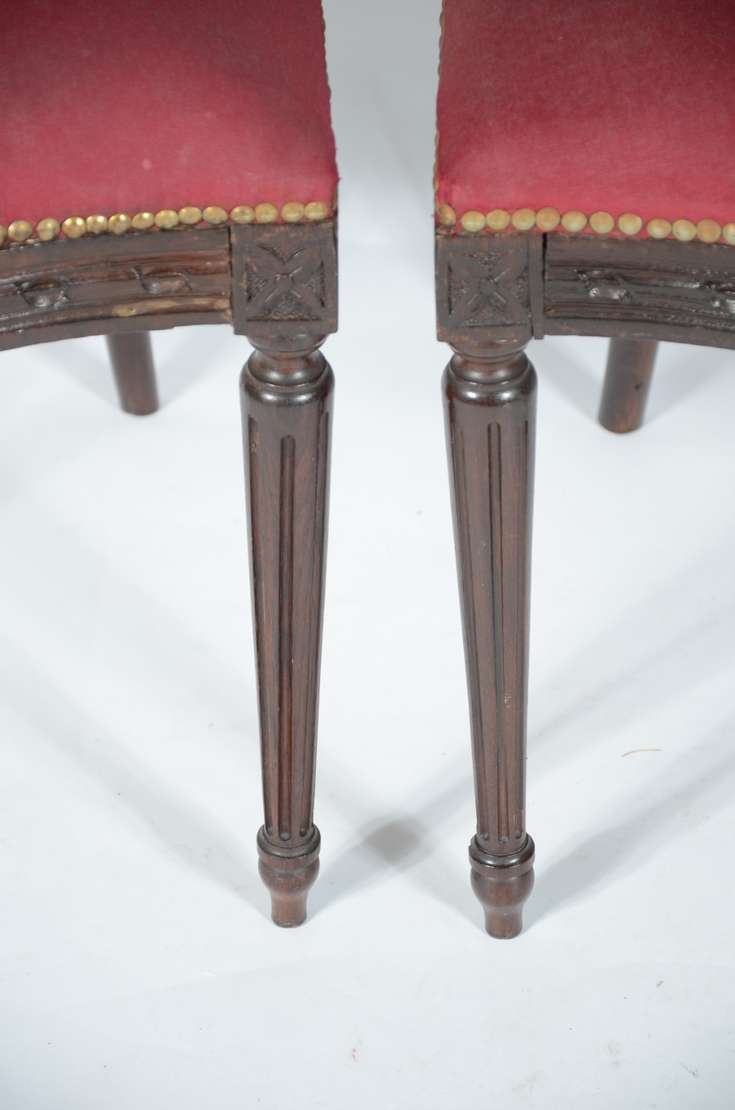 Conjunto com 6 cadeiras de jacarandá, estofadas e forradas em linho com tacheados. Anos 60.