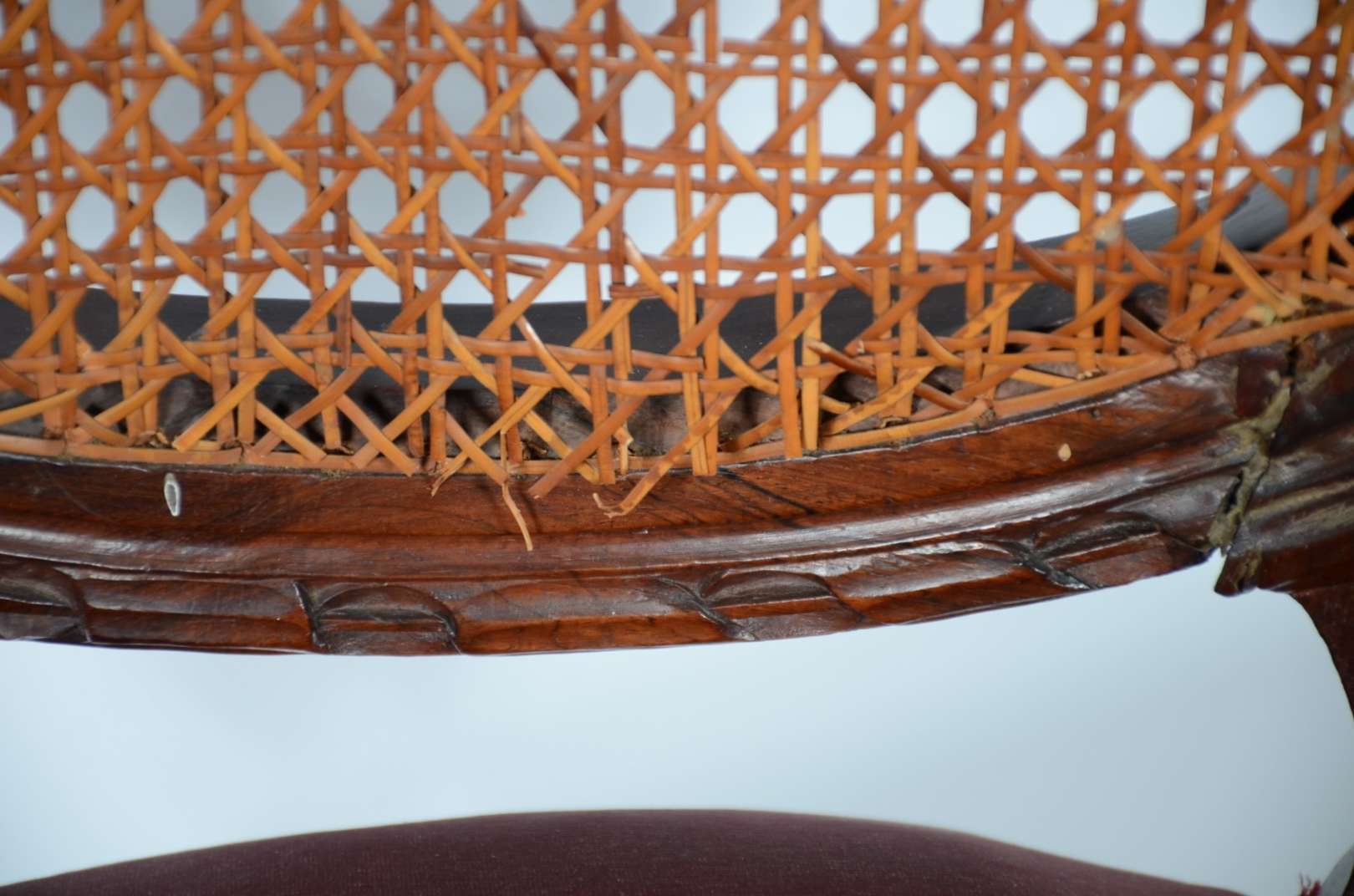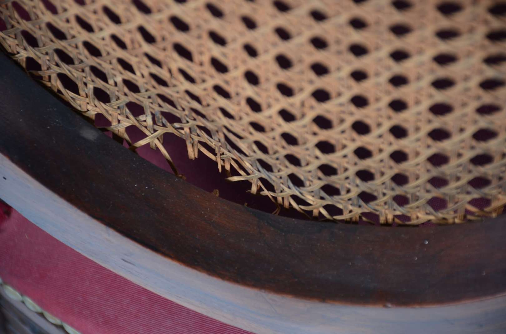 Canapé de jacarandá, encosto recortado com detalhes entalhados, forração de palhinha no assento, laterais e encosto, ...