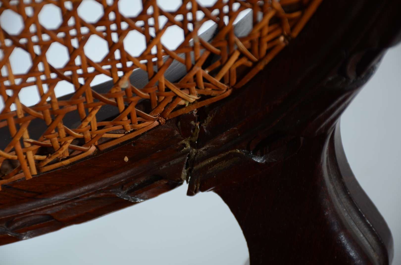 Cadeira com braços de jacarandá dita "rabo de macaco", assento de palhinha sintética.