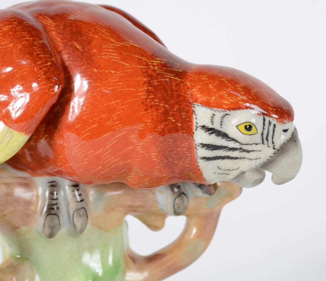 Escultura de porcelana portuguesa Vista Alegre representando "Dama com arara" em policromia e realces dourados. Marca...