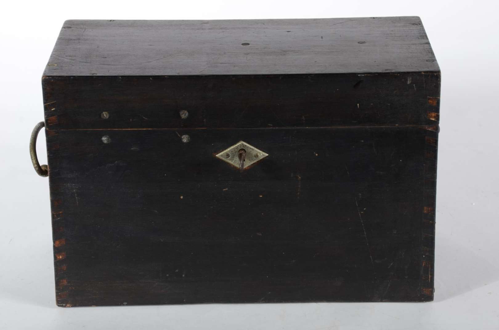 Antigo telefone em baquelite preto.