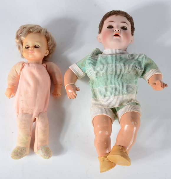 Duas bonecas de massa e material sintético, sendo uma alemã e outra de Hong Kong datada de 1971.