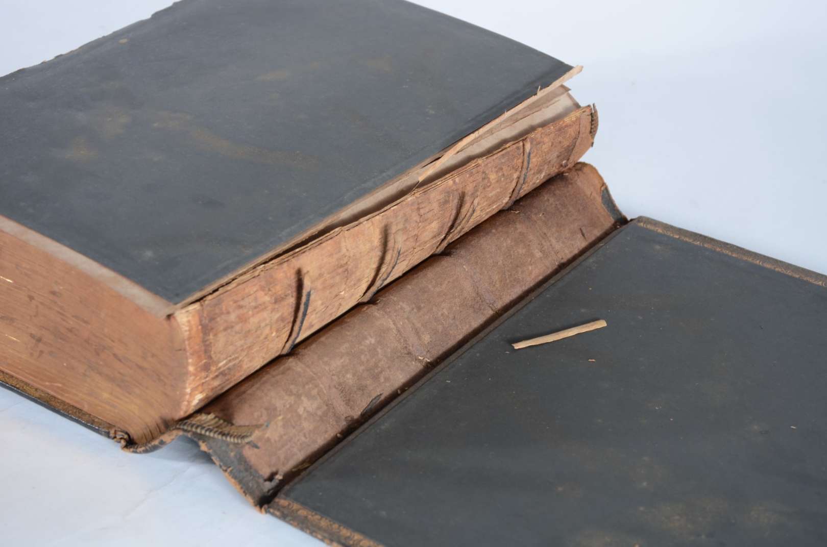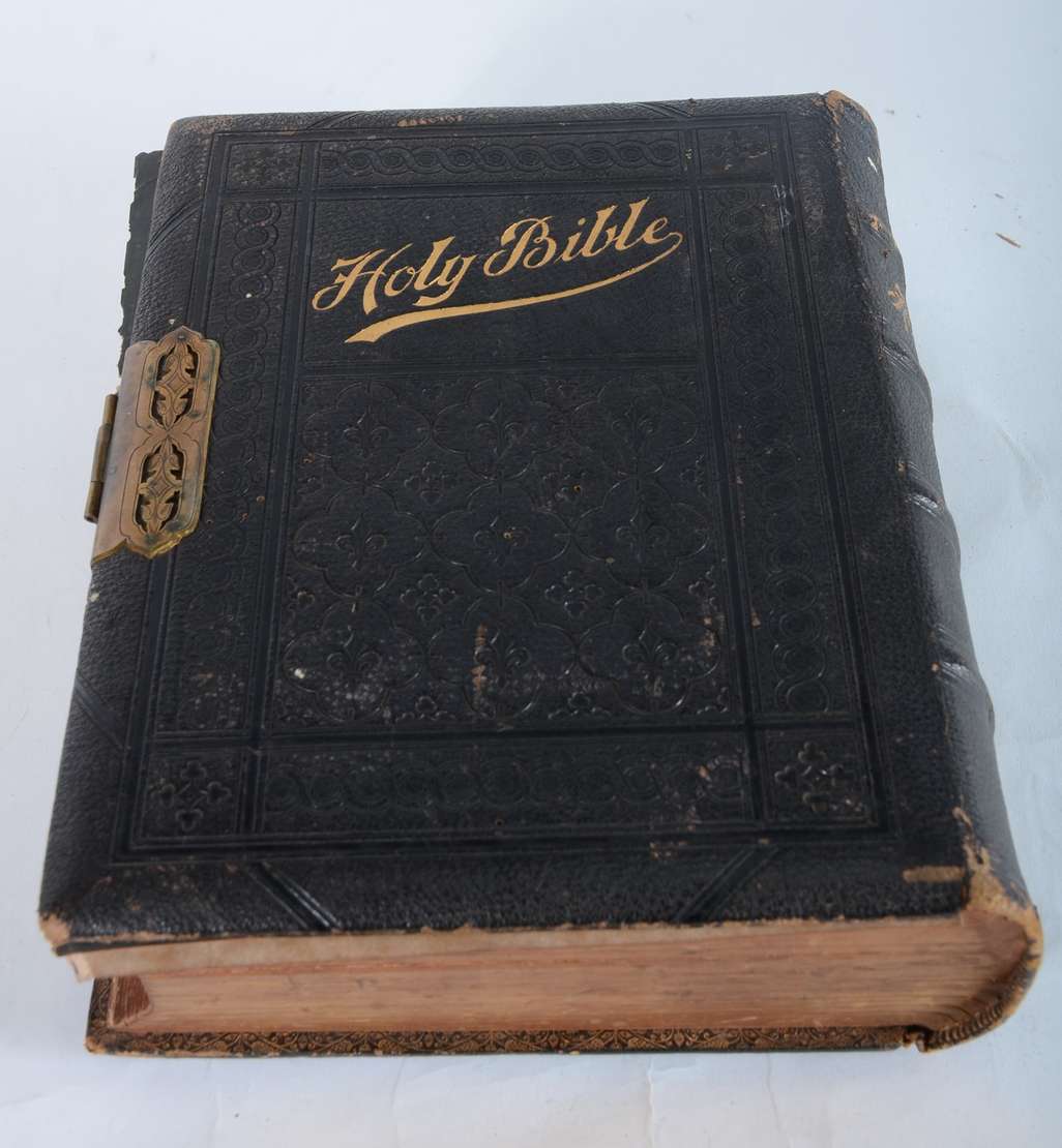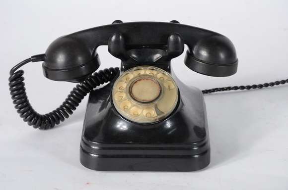 Antigo telefone em baquelite preto.