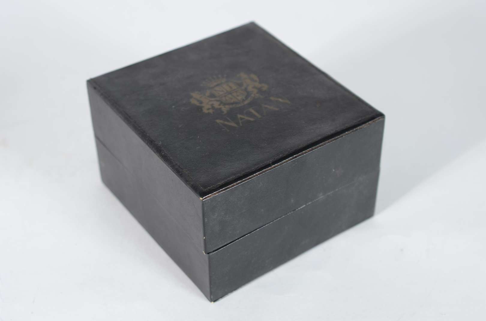 Chaveiro de ouro 18 k., com figuras em policromia de um calhambeque e do outro lado, São Cristóvão - protetor dos mot...