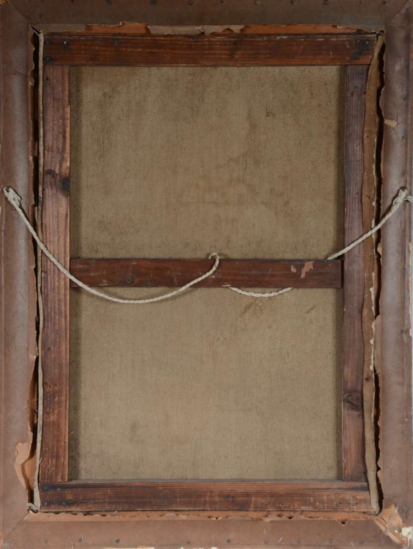 Óleo sobre madeira. (Atribuído - Não apresenta assinatura, apenas no verso descrição dos dados do artista).