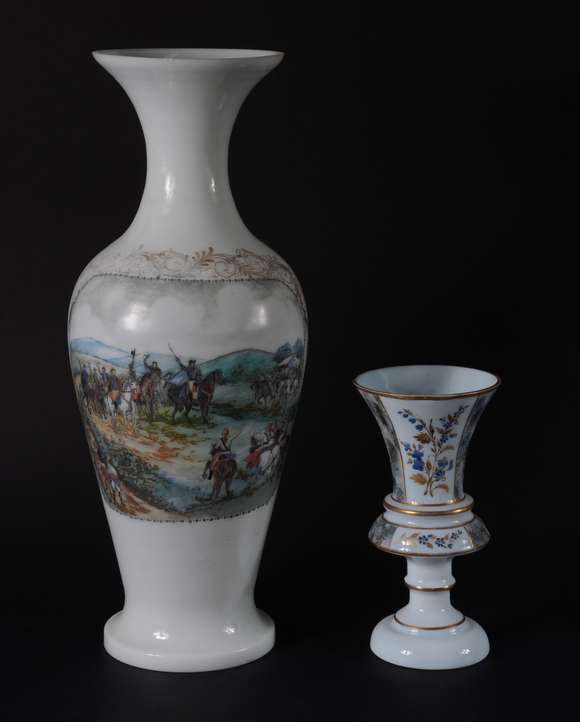Dois vasos de opalina. Um deles com pequeno lascado na borda.