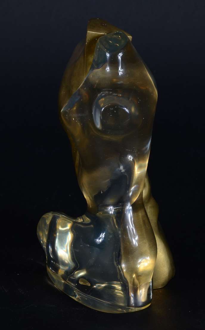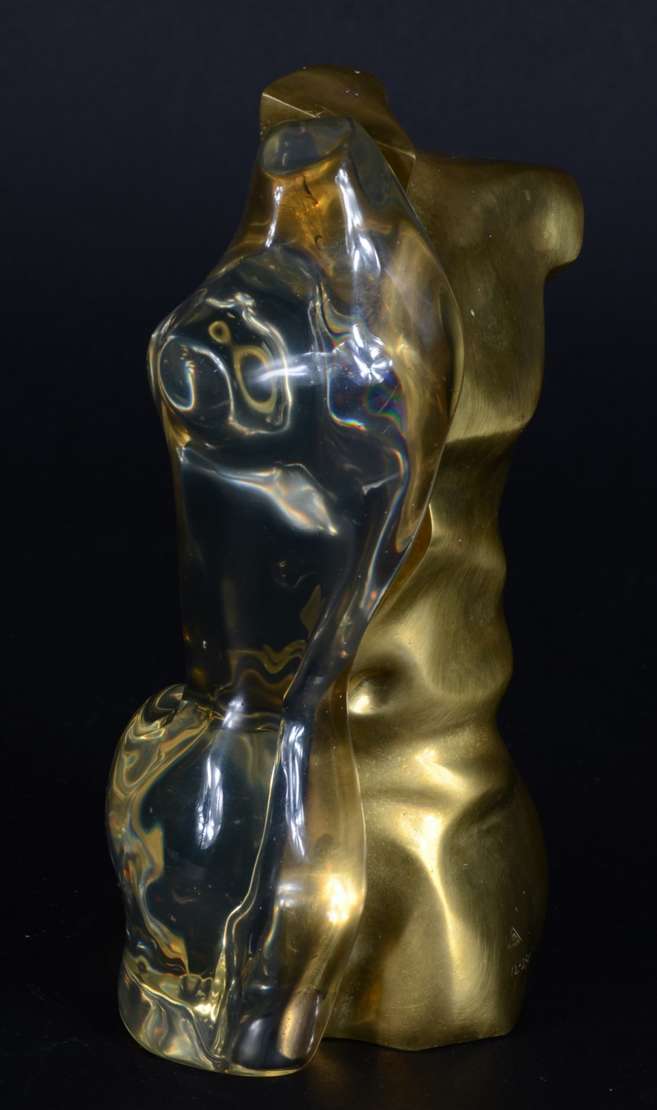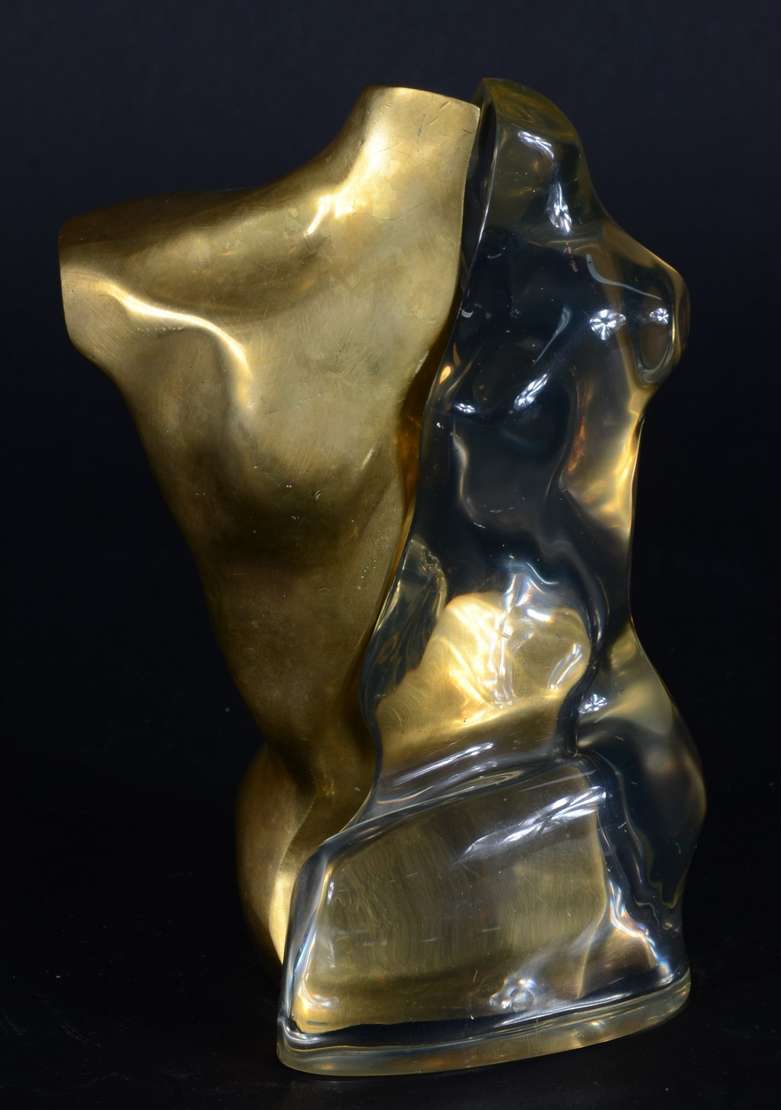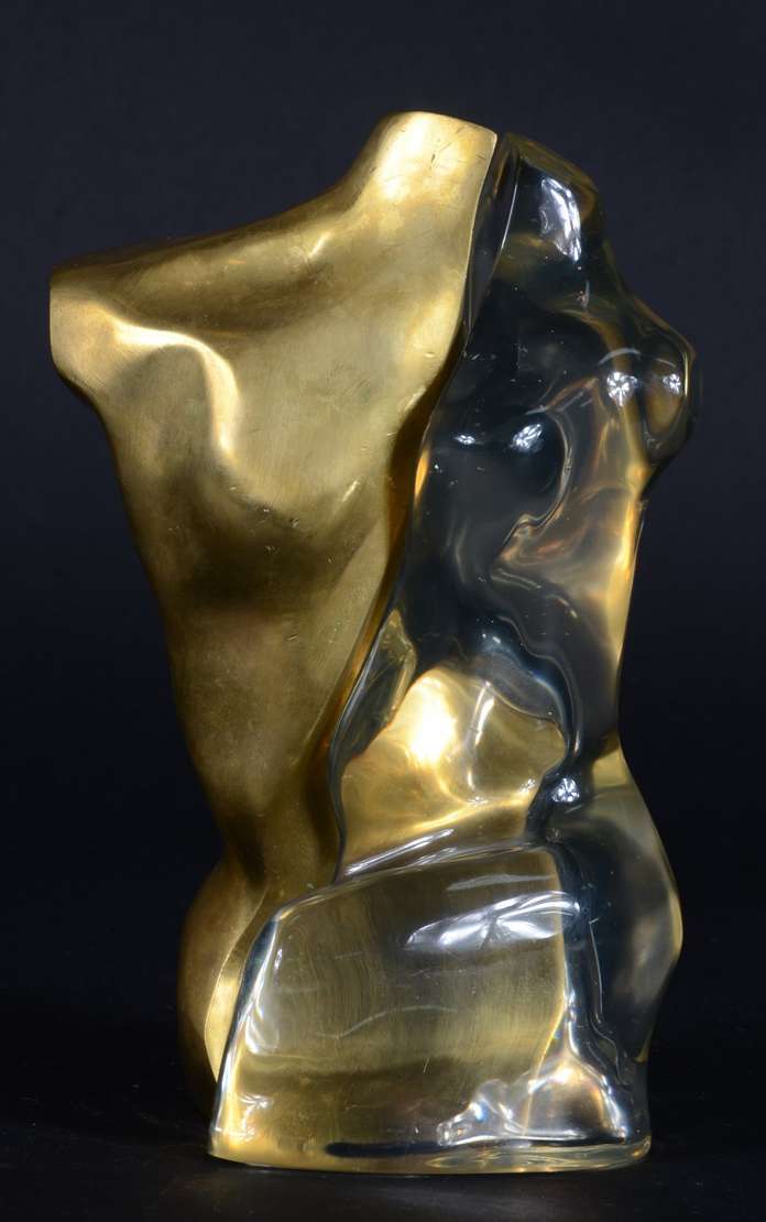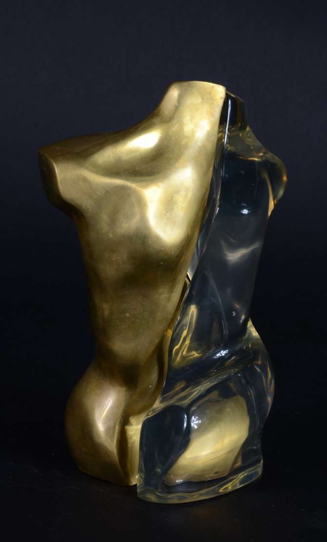 Estatueta de faiança oriental Satzuma em policromia com realces dourados representando figura feminina.