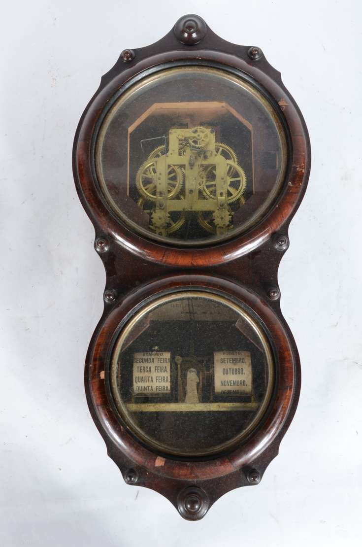 Três peças sacras, sendo: grande terço de metal prateado e duas figas de madeira (a maior com guarnição de prata).