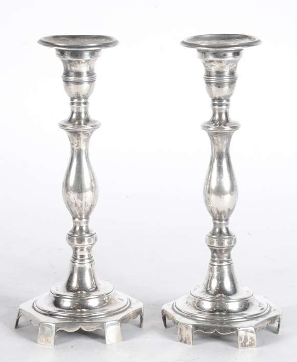Par de castiçais de prata contrastada. Peso da prata: 770 g. (Por motivos de segurança a peça não se encontra naloja).