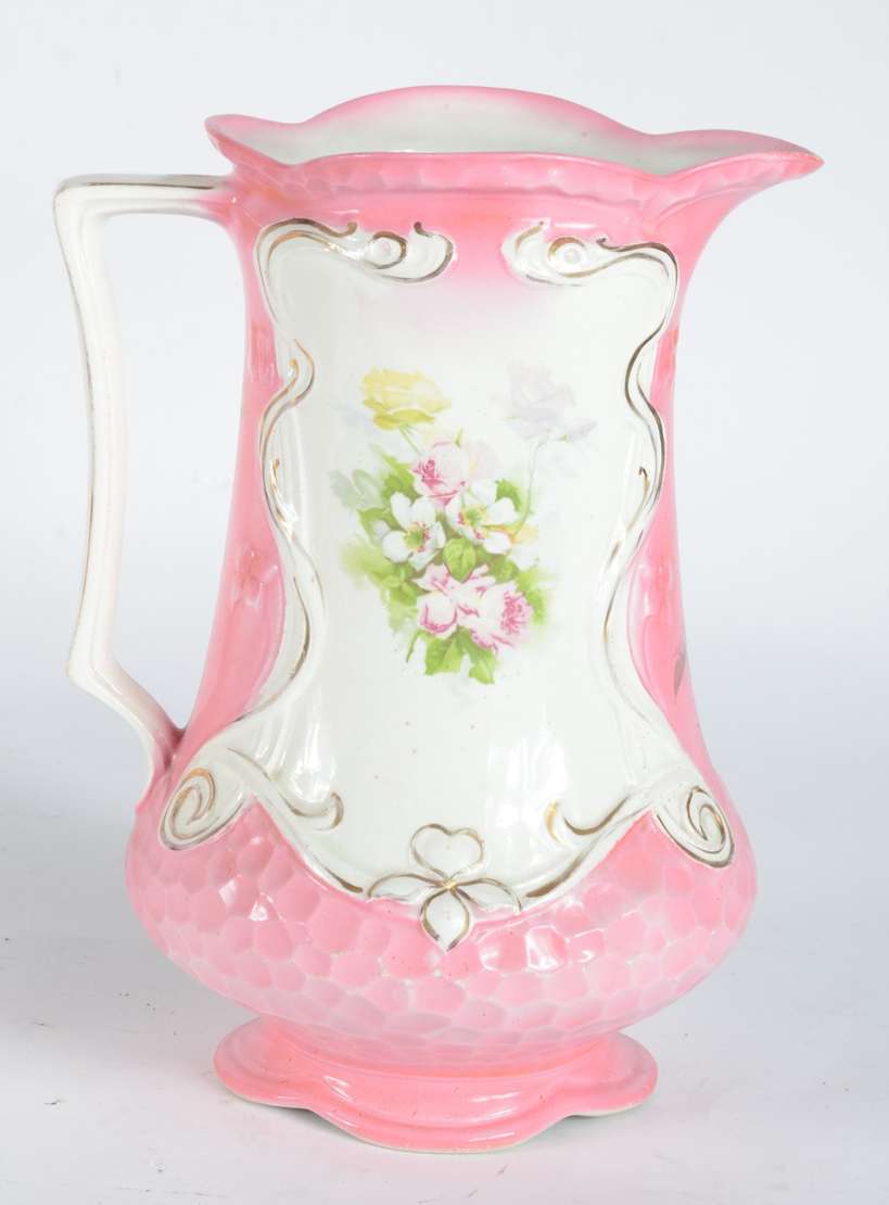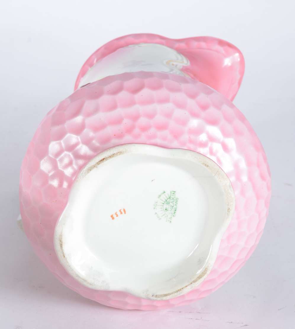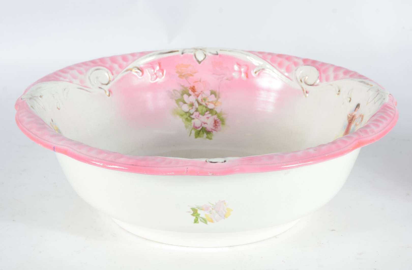 Diversas peças, sendo: vaso de vidro com resquícios de frisos dourados; Fruteira de metal com interior de vidro rosa ...