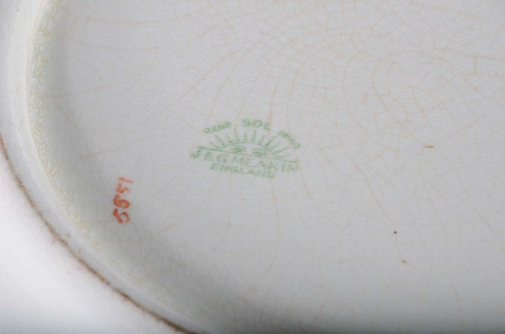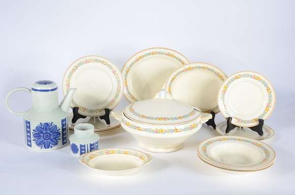Parte de aparelho de jantar de faiança "Grindley" na cor bege, borda decorada com flores em policromia, composto de: ...