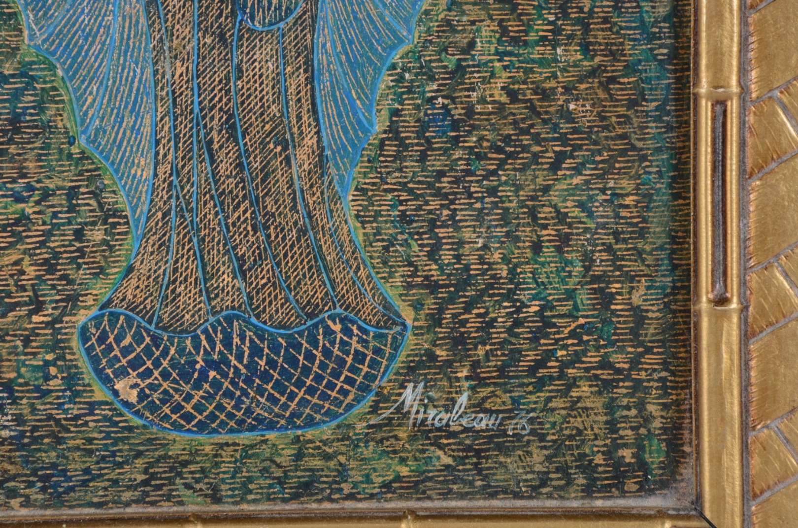 Ícone - pintura policromada sobre madeira. Desgastes.