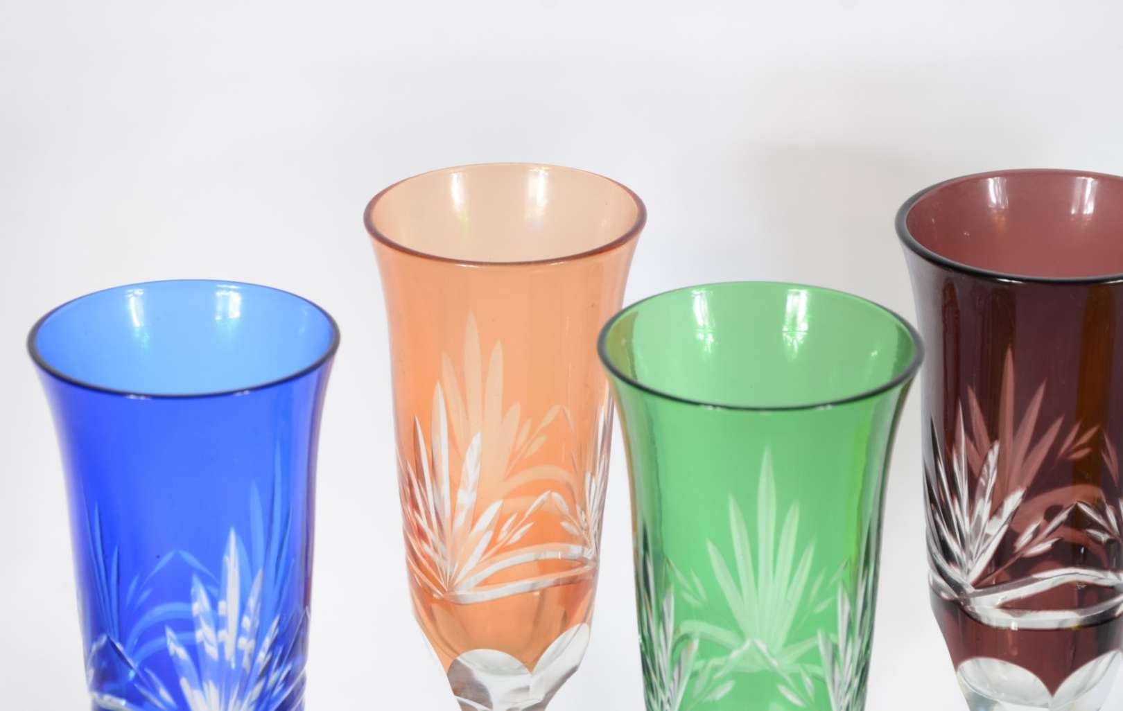 Conjunto com 6 copos para Whisky de cristal doublé colorido.