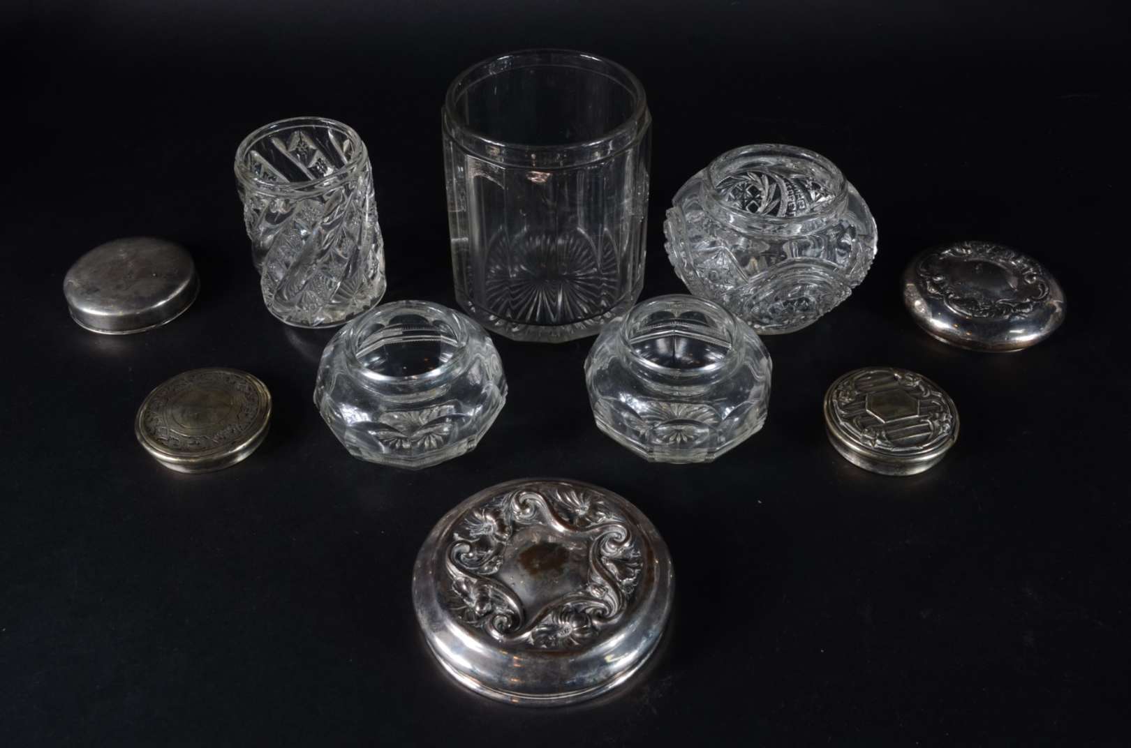 Duas peças, sendo: açucareiro com 3 pés e alça de prata de lei e, caneca de metal com detalhes cinzelados e gomos ret...