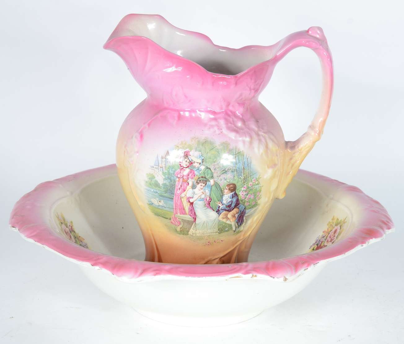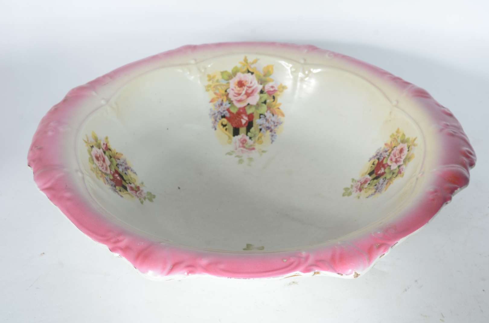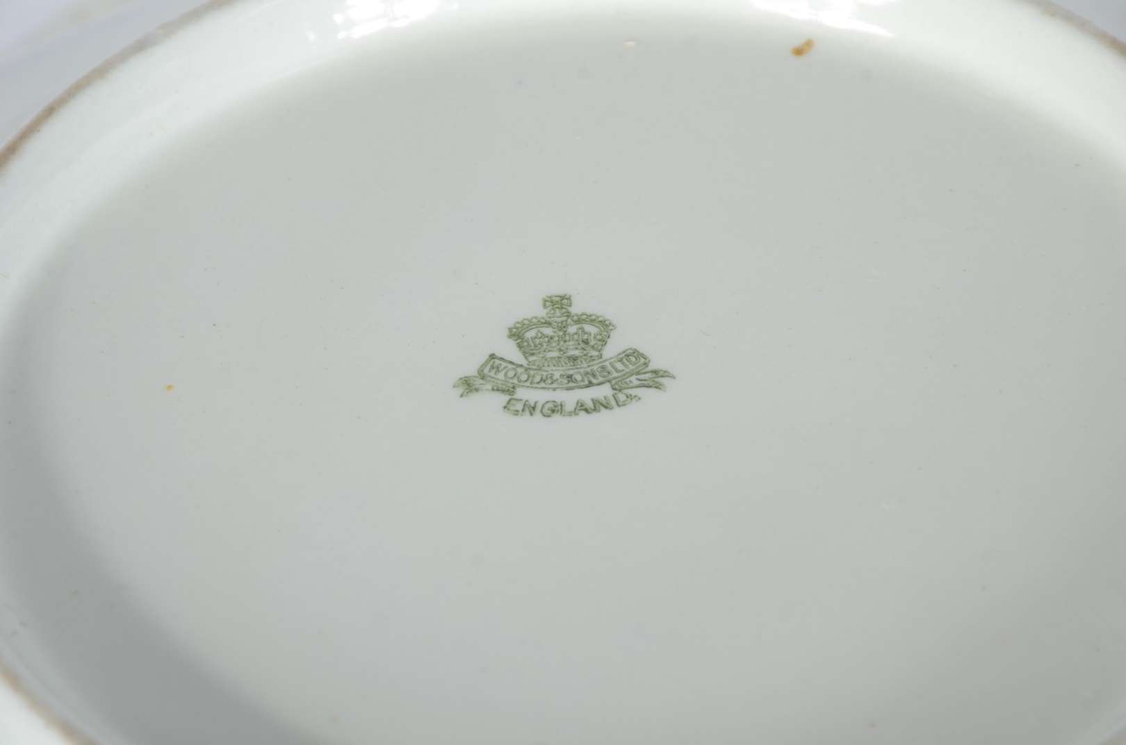 Parte de aparelho de jantar de faiança "Grindley" na cor bege, borda decorada com flores em policromia, composto de: ...