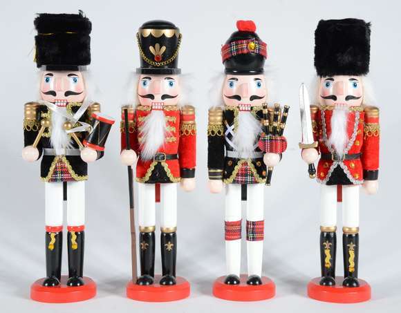 Enfeite Natalino - Quatro bonecos de madeira policromado "quebra nozes".
