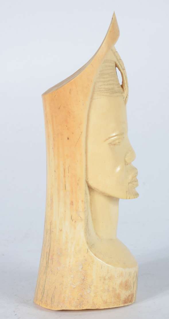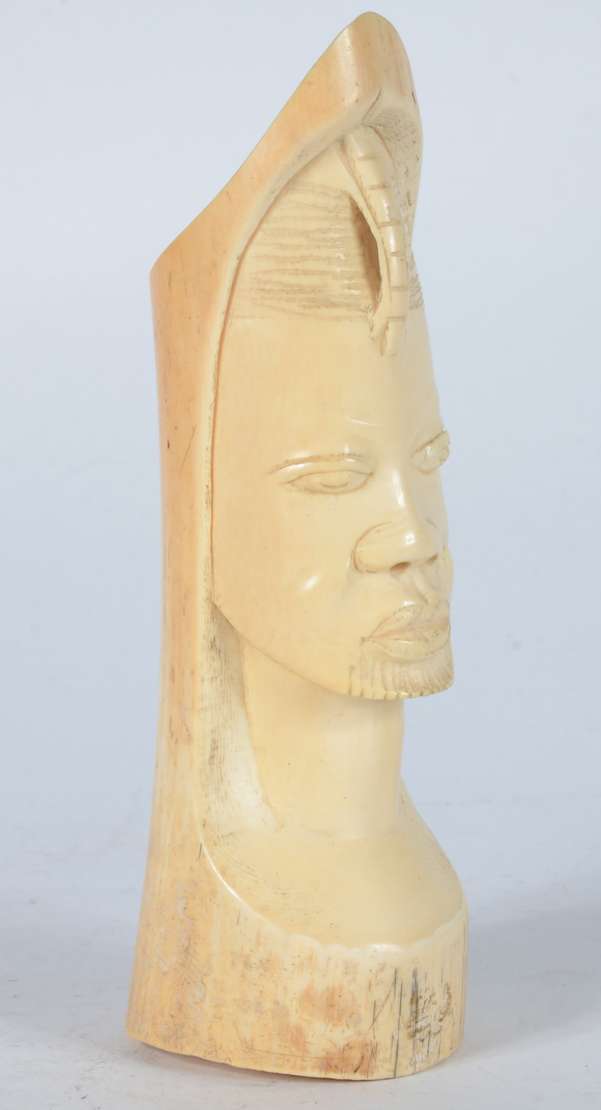 Estatueta de faiança oriental Satzuma em policromia com realces dourados representando figura feminina.