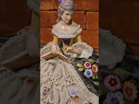 Estatueta de porcelana policromada representando dama com violino.