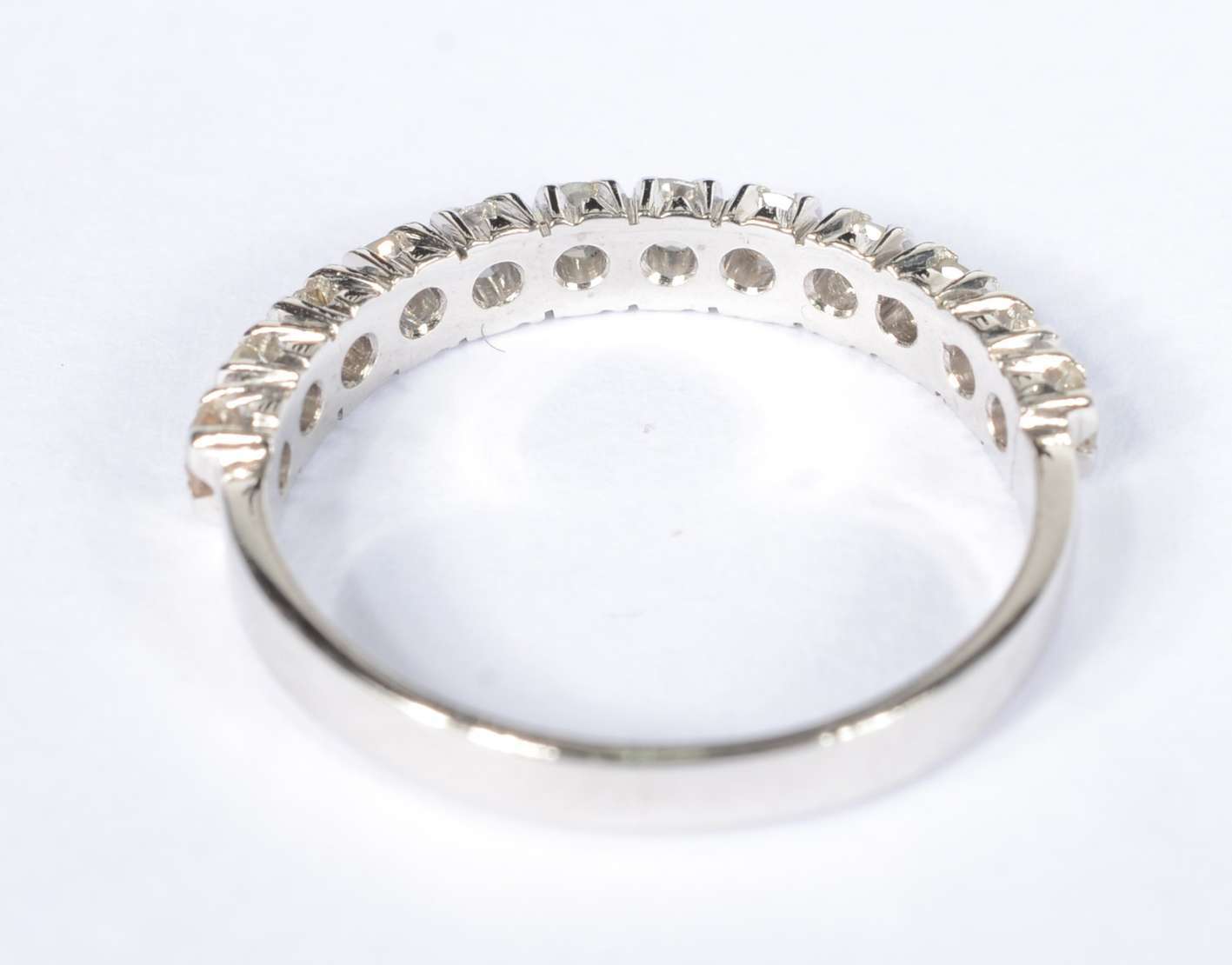 Anel de ouro 18 k., contraste 750 mls com brilhante central de 0,50 ct., e aproximadamente 24 brilhantes de 0,02 ct. ...