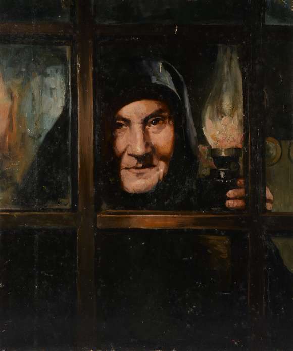 Ícone - pintura policromada sobre madeira. Desgastes.
