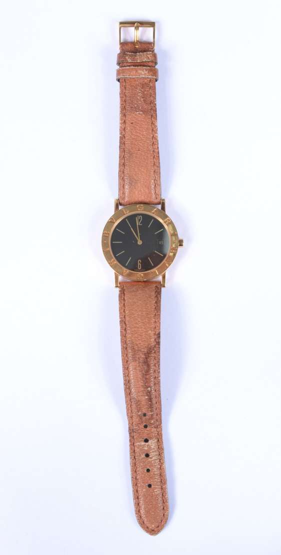 Pulseira de ouro 18 k., contraste 750 mls com dois brilhantes. (Por motivos de segurança a peça não se encontra na lo...