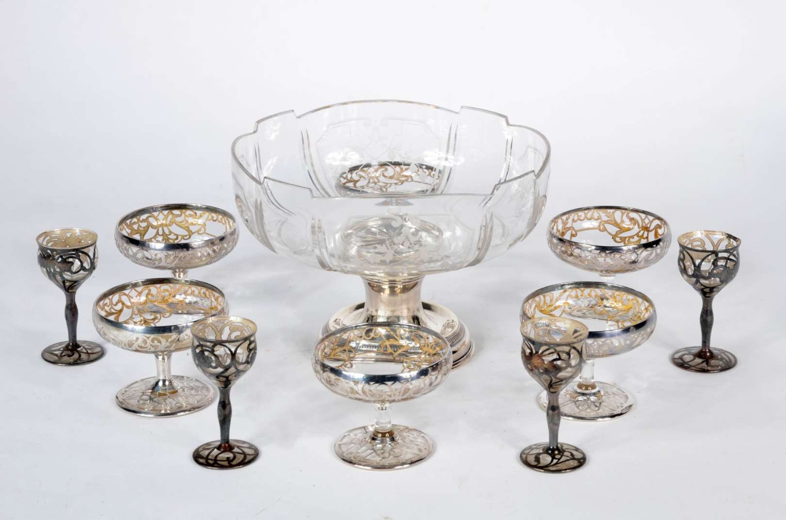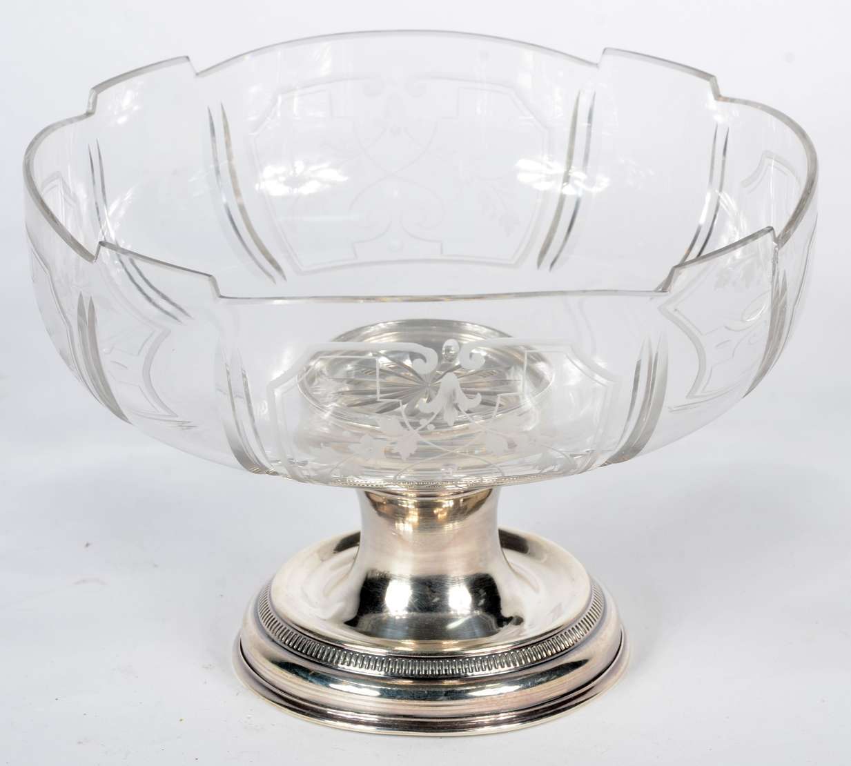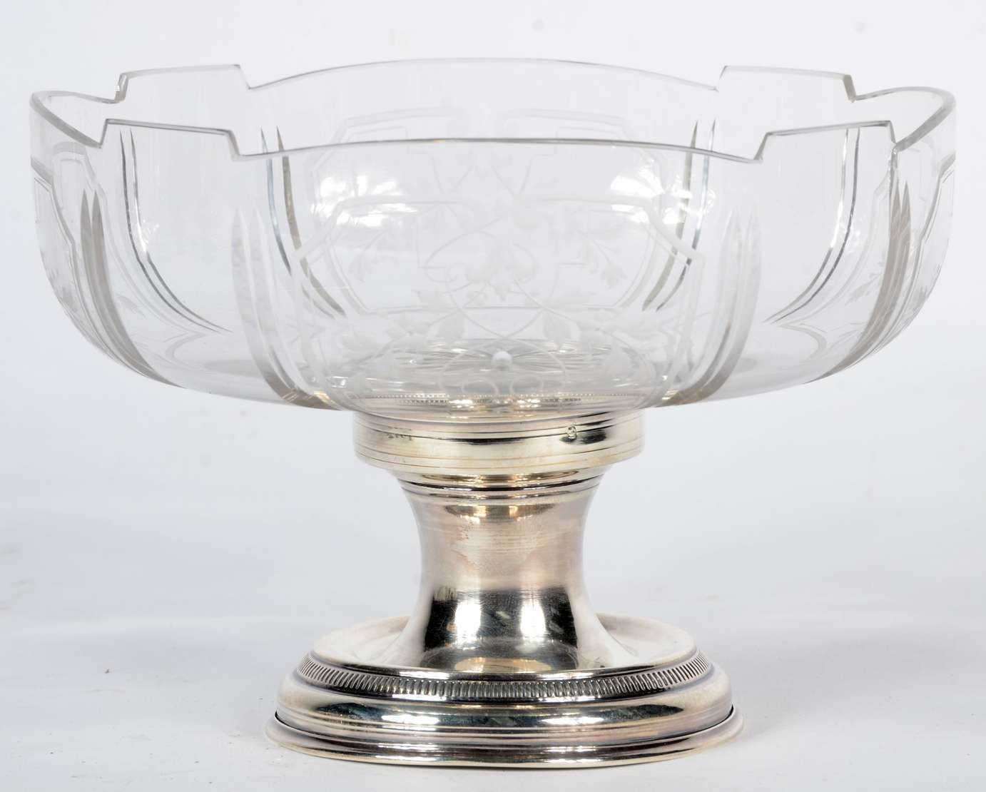 Fruteira de cristal tcheco lapidado, borda recortada.