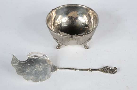 Duas peças, sendo: bowl e pá para peixe de prata portuguesa, contraste Javali. Peso da prata: 380 g. (Por motivos de ...