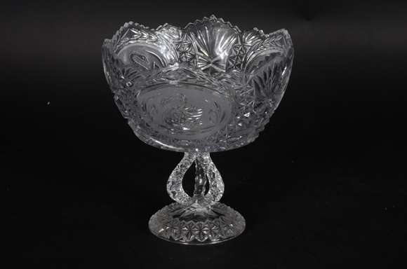 Fruteira de cristal tcheco lapidado, borda recortada.