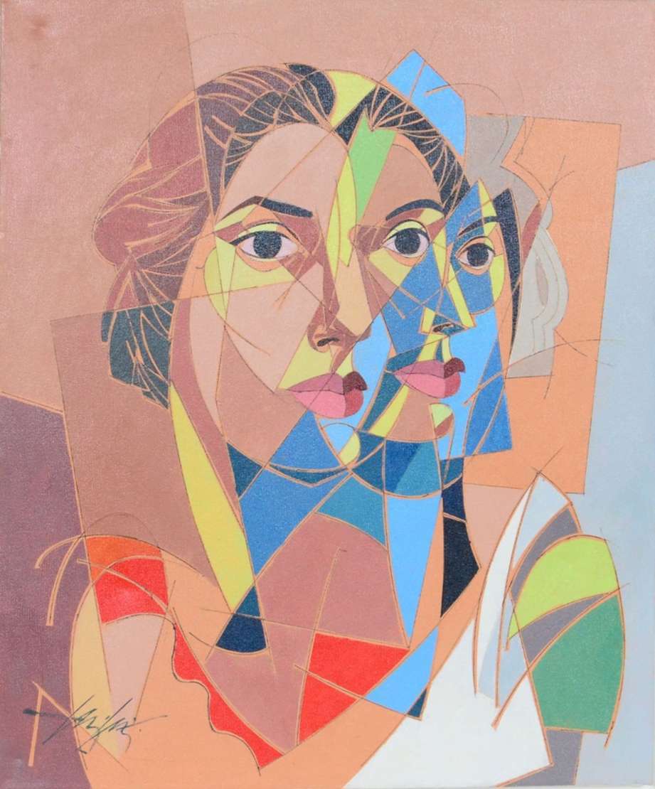 Quadro decorativo com figura de Madona de madeira e outros materiais.