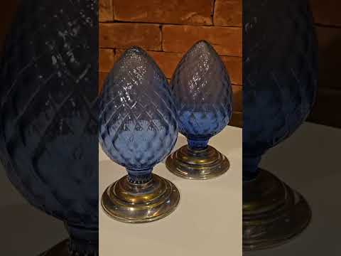 Recipiente em cristal europeu com tampa de prata cabeça de Minerva. Peso da prata: 20 g. (Por motivos de segurança a ...