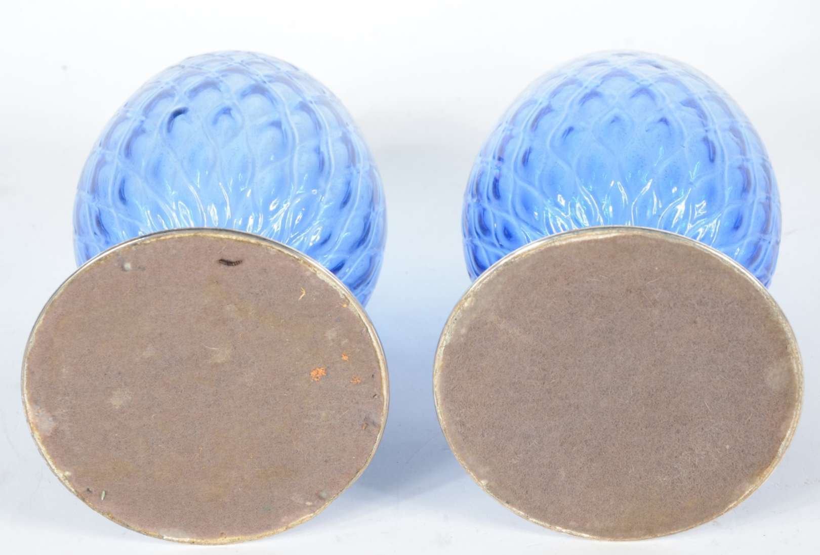 Três peças de porcelana, sendo: par de potiches de porcelana com metal (faltando uma pega, base amassada); prato com ...