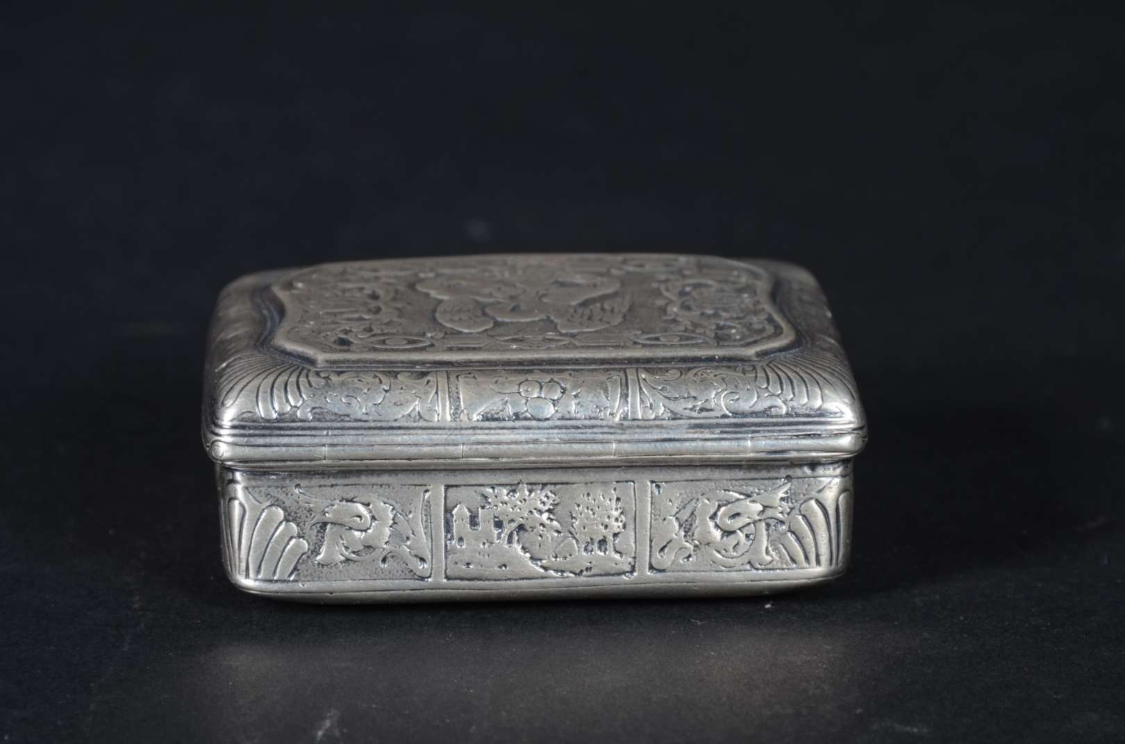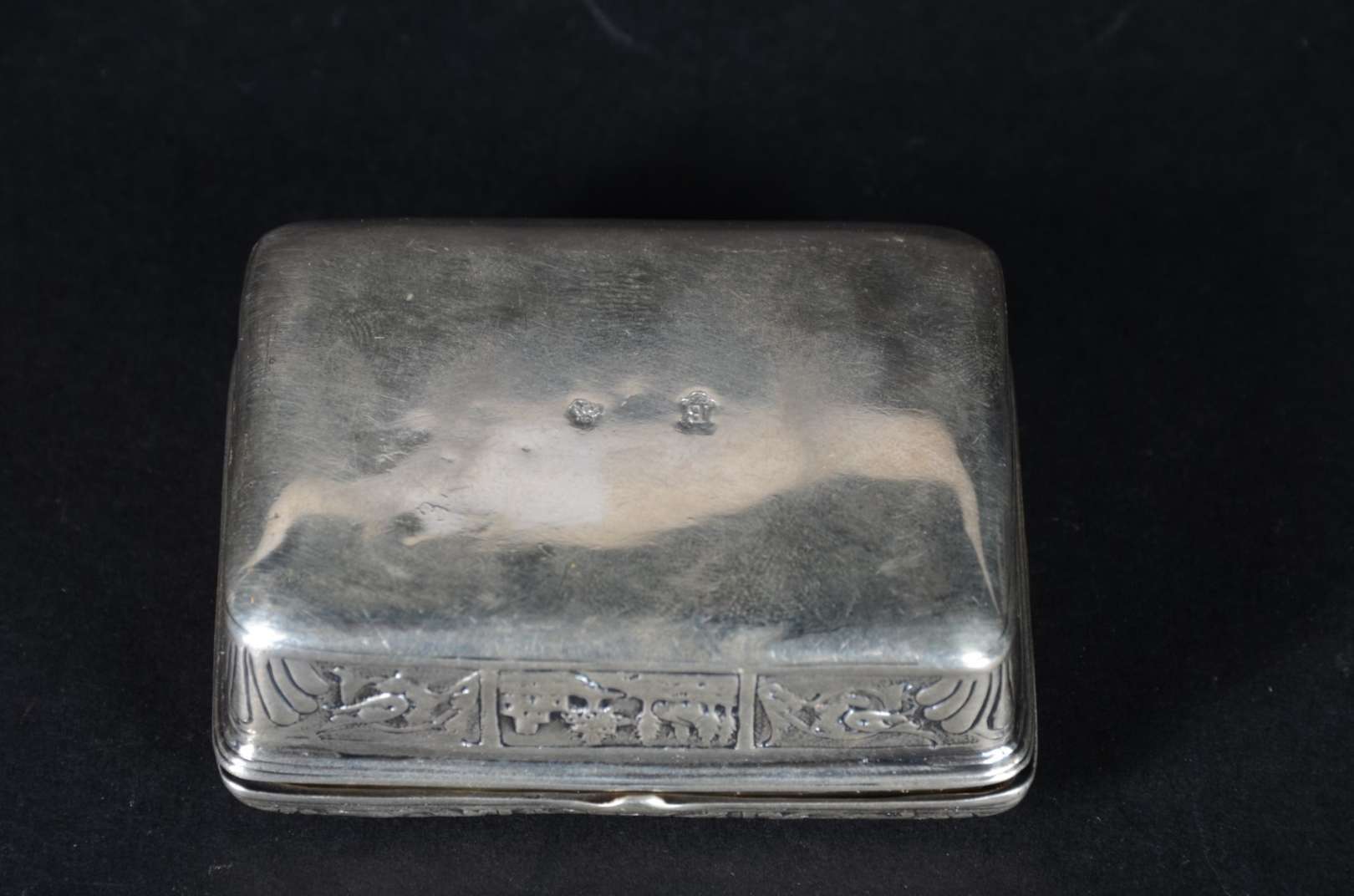 Três peças, sendo: cata migalha de prata portuguesa, contraste Javalí com duas escovas com guarnição de prata contras...