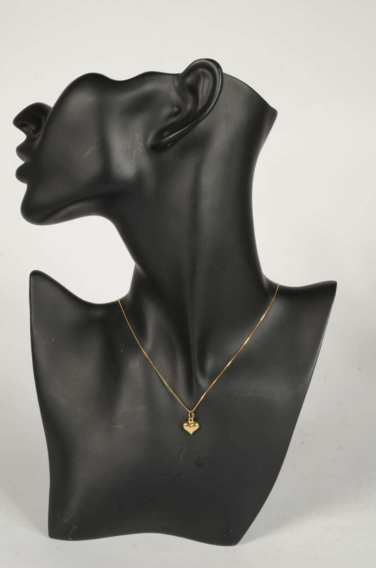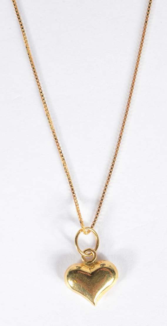 Colar de ouro 18 k., contraste 750 mls com pendente na forma de coração e laço com brilhantes. (Por motivos de segura...