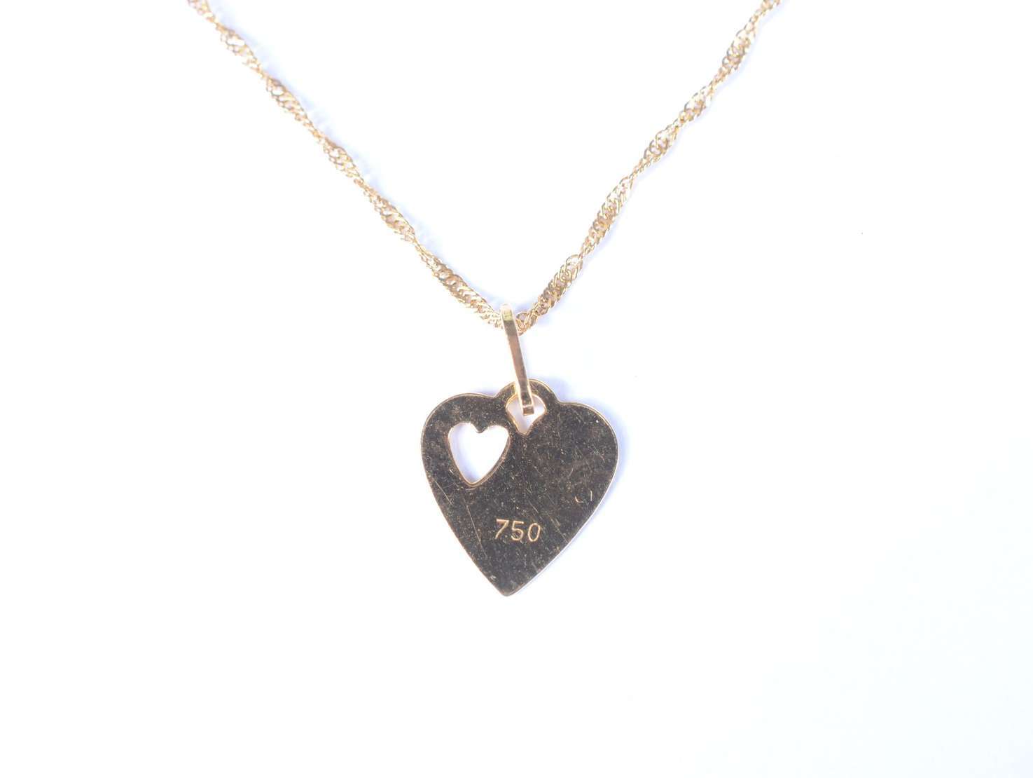 Gargantilha com pendente na forma de coração de ouro 18 k., contraste 750 mls. (Por motivos de segurança a peça não s...