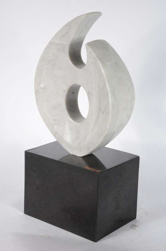 Escultura de mármore negro com base de granito laranja. Assinado. Pequeno lascado. Altura da escultura: 44 cm./ Altur...
