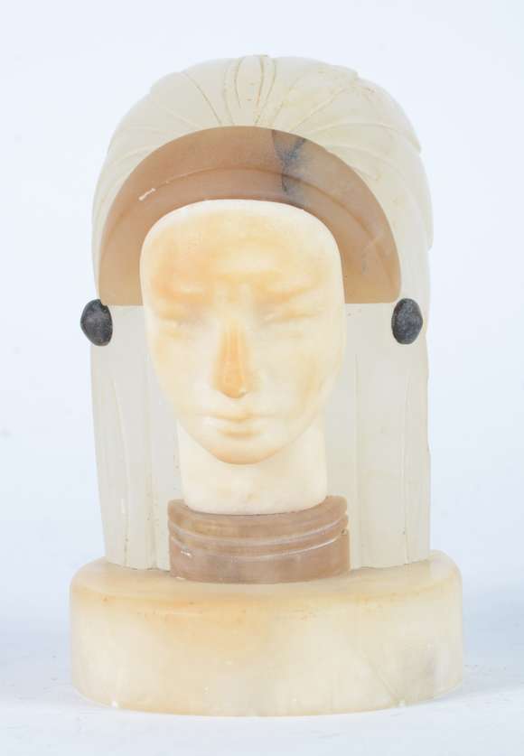 Escultura de ônix e alabastro representando índia.