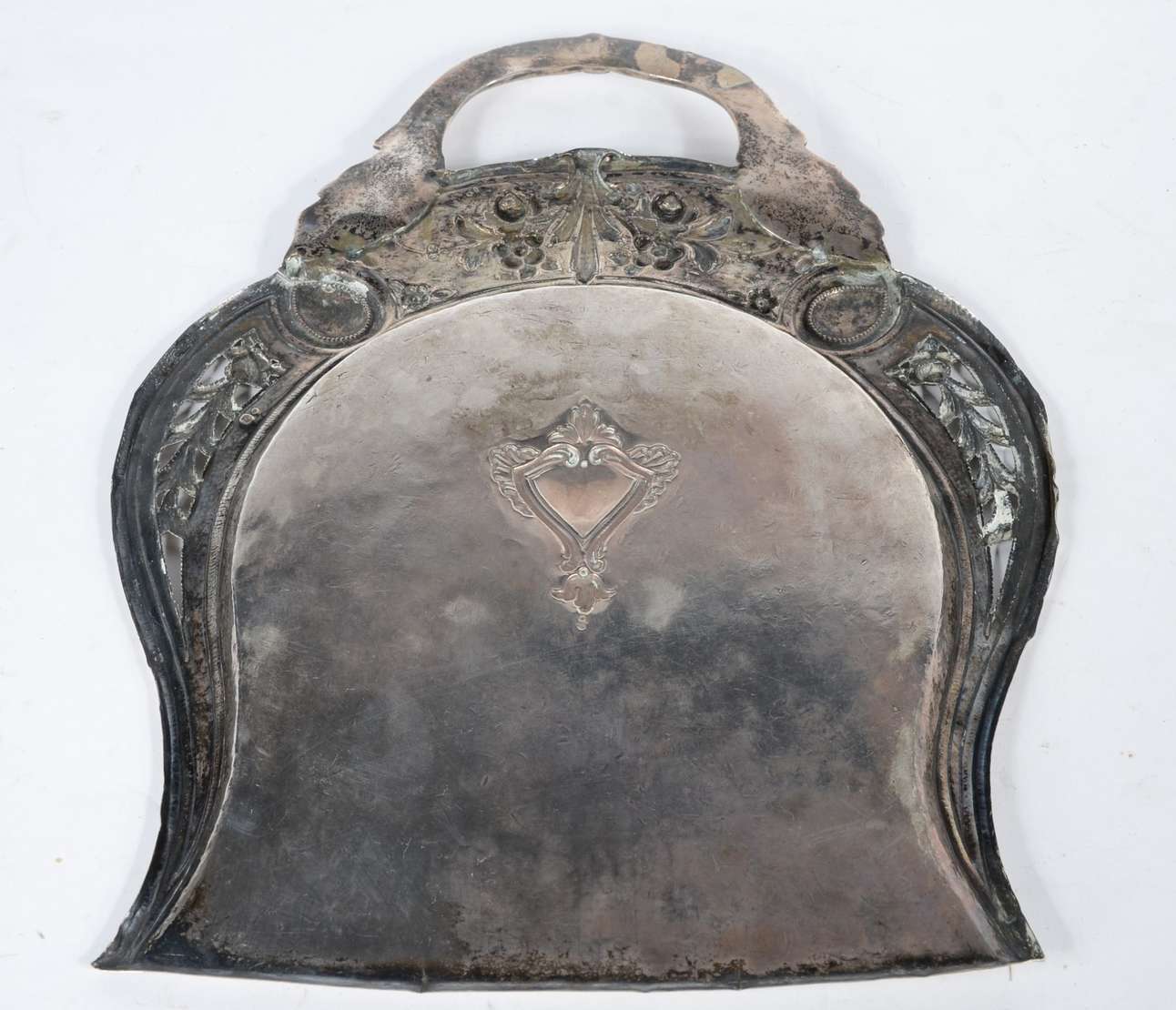 Diversas peças de metal, sendo: caixa para chá; garrafa de bolso; 2 facas com bainhas; 2 clips e girafa de metal dour...