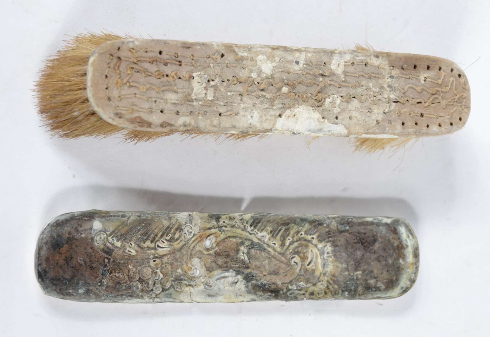 Duas peças, sendo:Leque e uma escultura de marfim representando pescador (faltando partes).