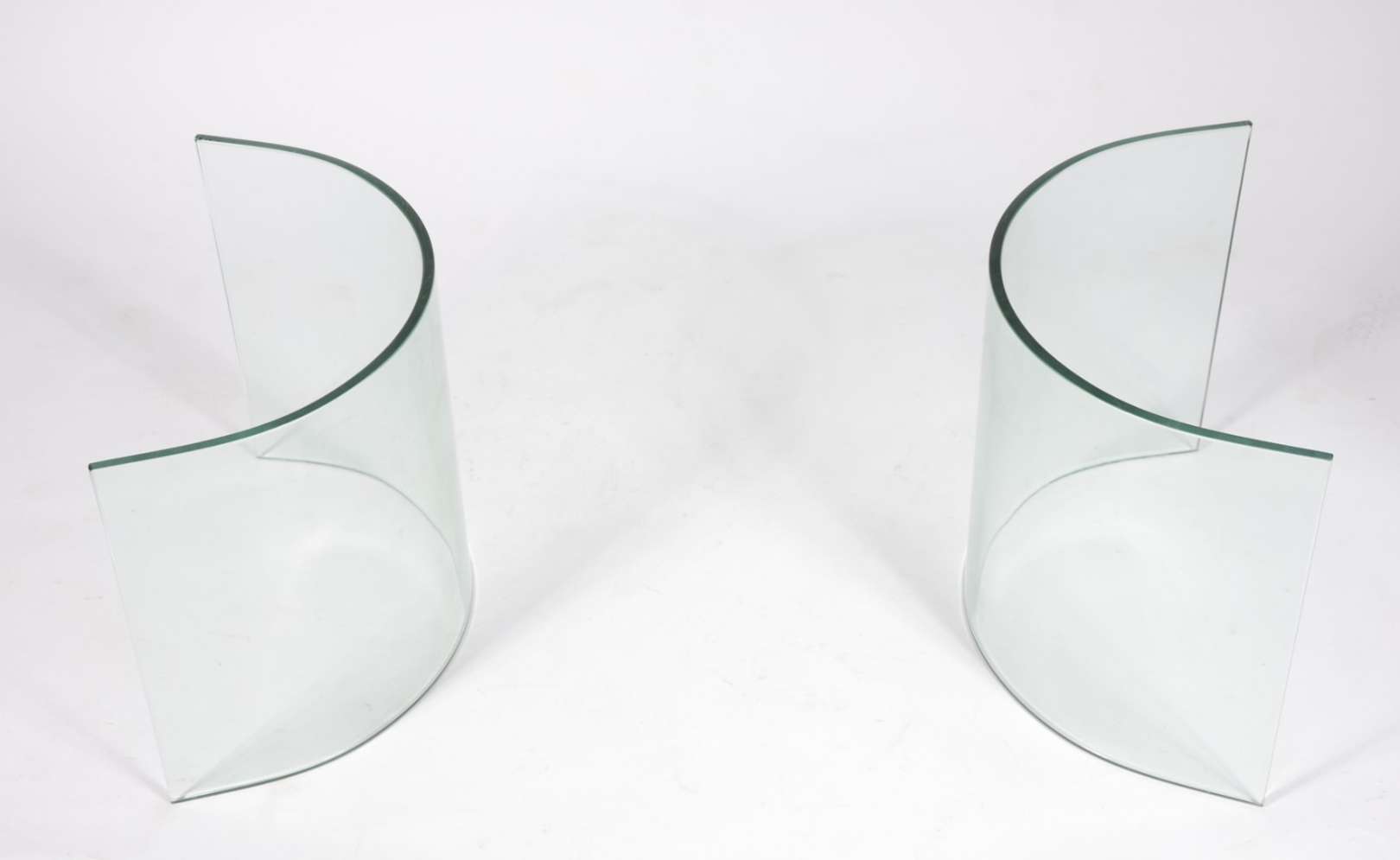 Par de mesas laterais de madeira nobre, tampos quadrados com saias decoradas com bilros apoiados em colunas feitio ba...
